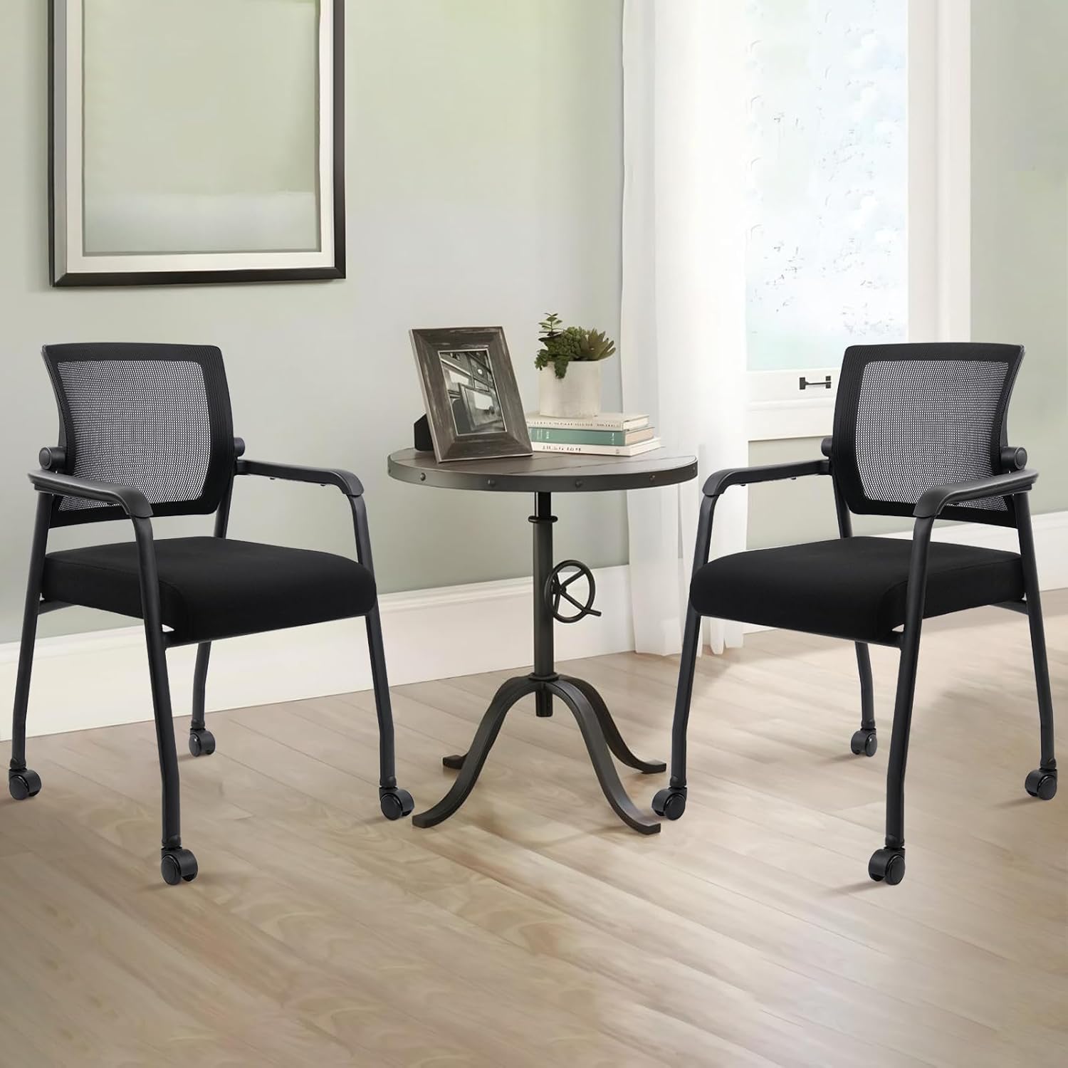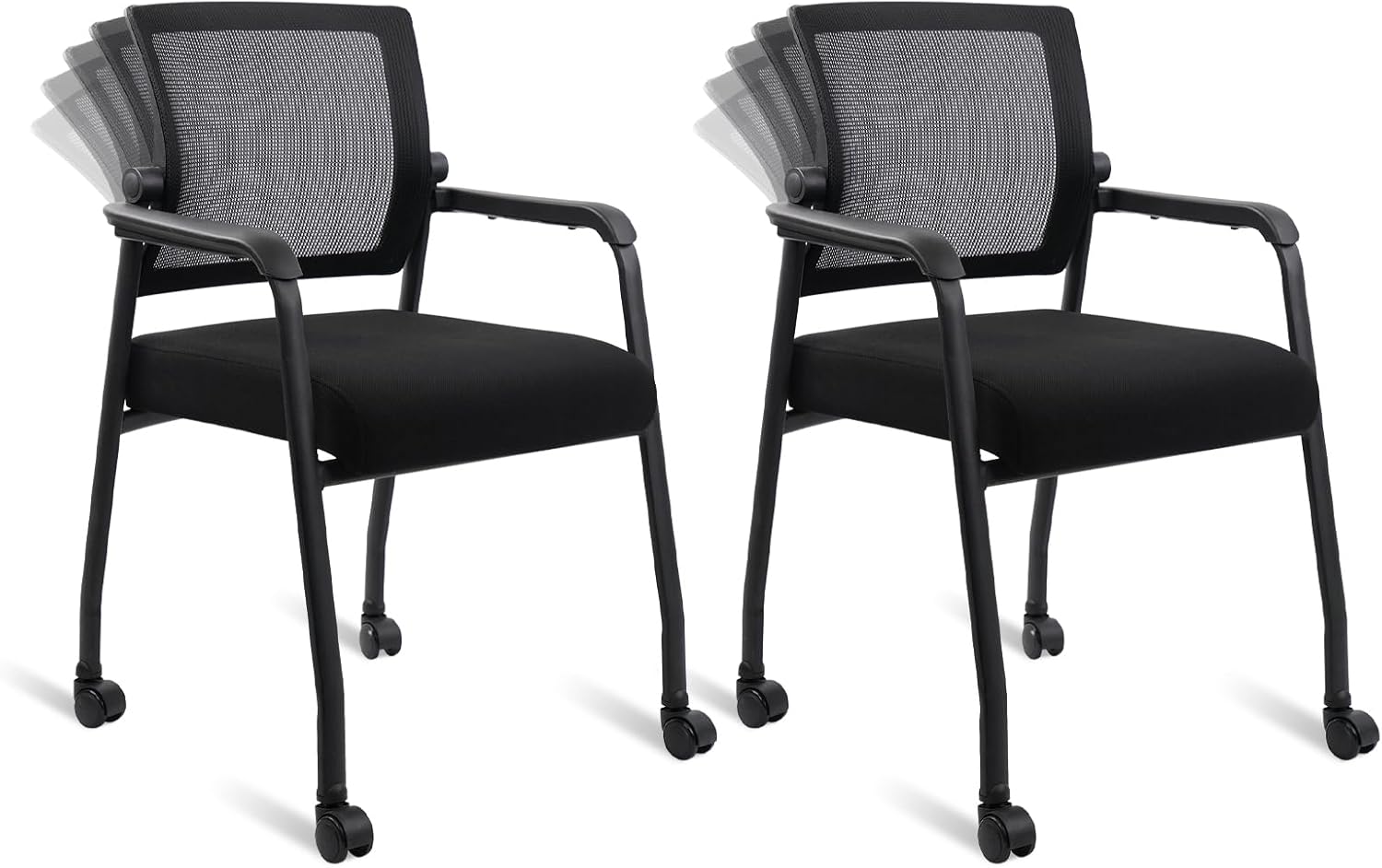 Waiting Room Chairs with Wheels, Adjustable Mesh Backrest, Desk Chair with Ergonomic Lumbar Support and Thickened Seats Cushion, 2 Pack Black