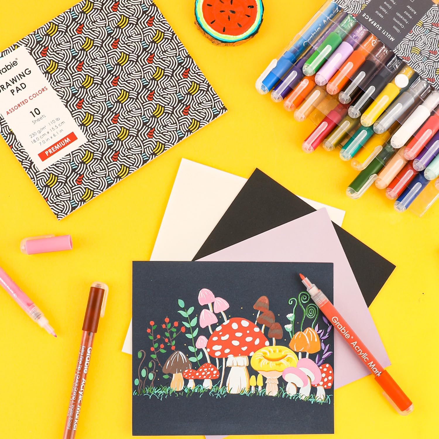 Grabie Acrylic Paint Pens Markers, 28 Colors, 0.7 mm, Extra Fine Tip Drawing Markers, Premium Paint Pens for Painting on Various Surface, Art Supplies