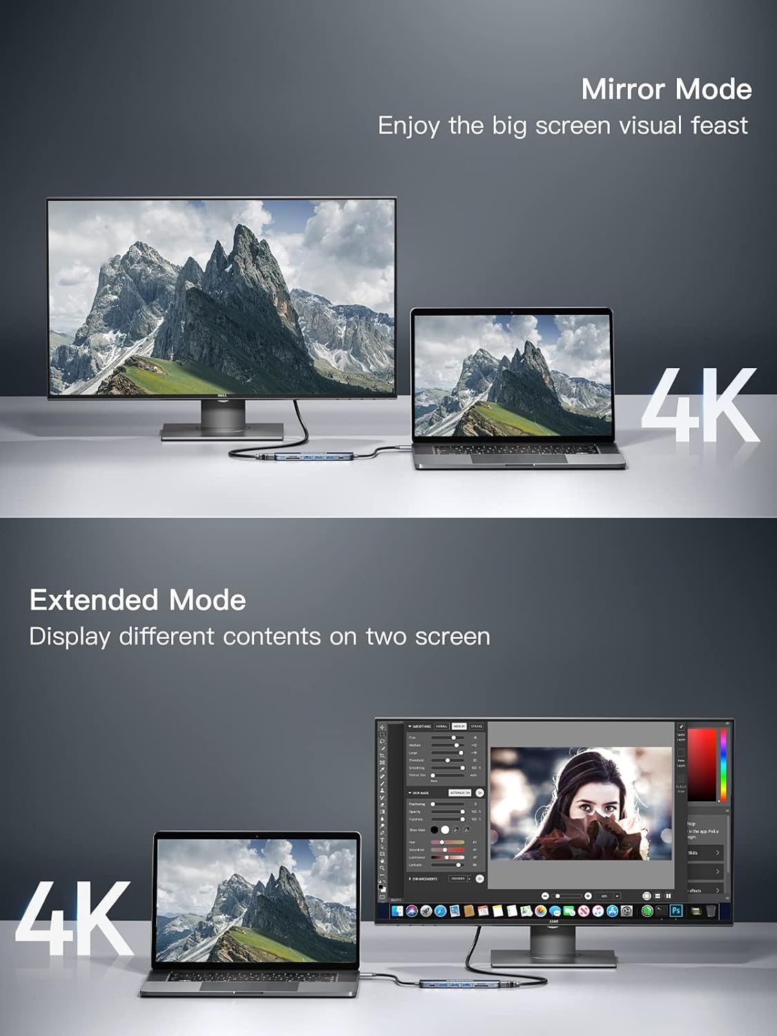 - [4K CRYSTAL CLEAR VISUAL ENJOYMENT] DocktckExpand USB C HDMI Hub mirror or extend your screens and directly stream 4K 30Hz High Defination to HDTVs, big Monitors or Projectors. Perfect for office, meetings, hotel and home