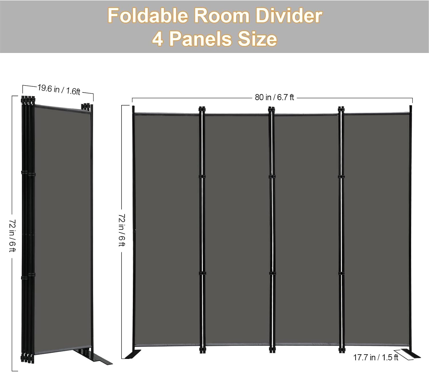 MAYOLIAH 4 Panel Room Divider Screen 6Ft Tall Foldable Privacy Dividers Indoor Wall Partition Room Separator Grey