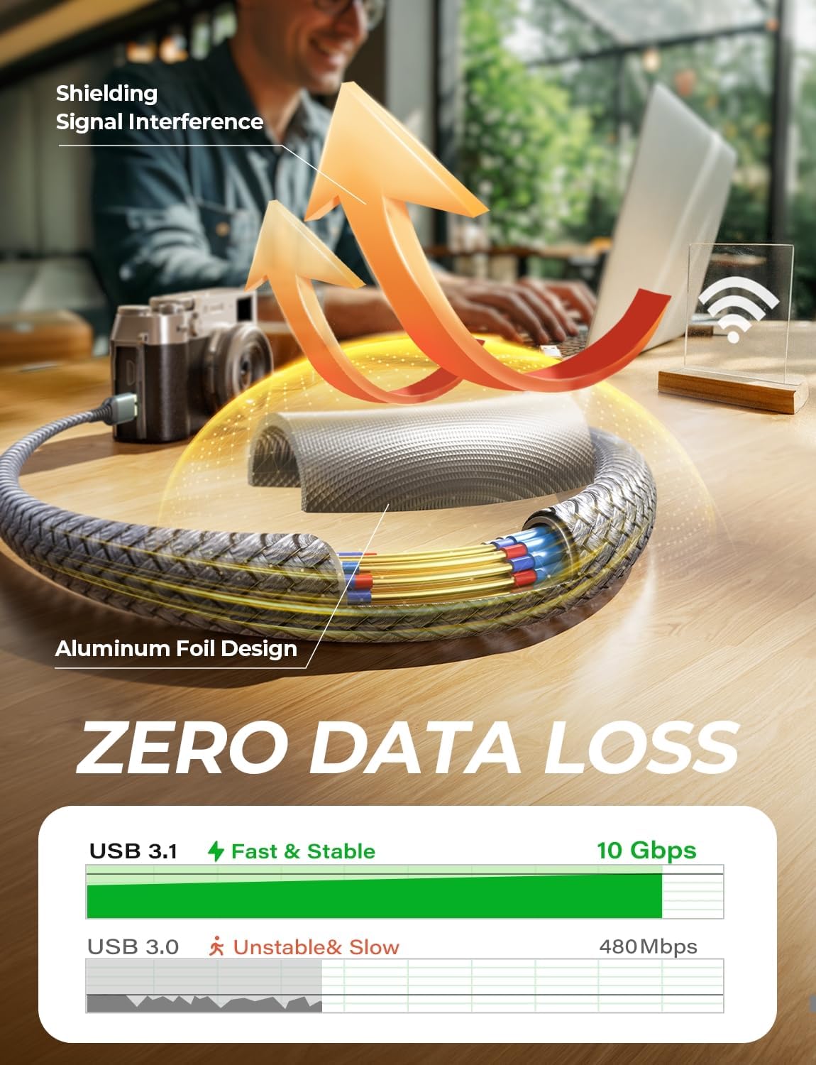 - 【Secret Of Highest Stability】This USB C to Micro b external hard cable has been tested by more than 600+ professional institutes. The cable is equipped with an internal earth wire and is plated with silver foil, and the outer part uses FM-PE braided. Unique gold-plated connectors also make data transmission more stable. Avoid transmission failure due to instability during fast transmission.