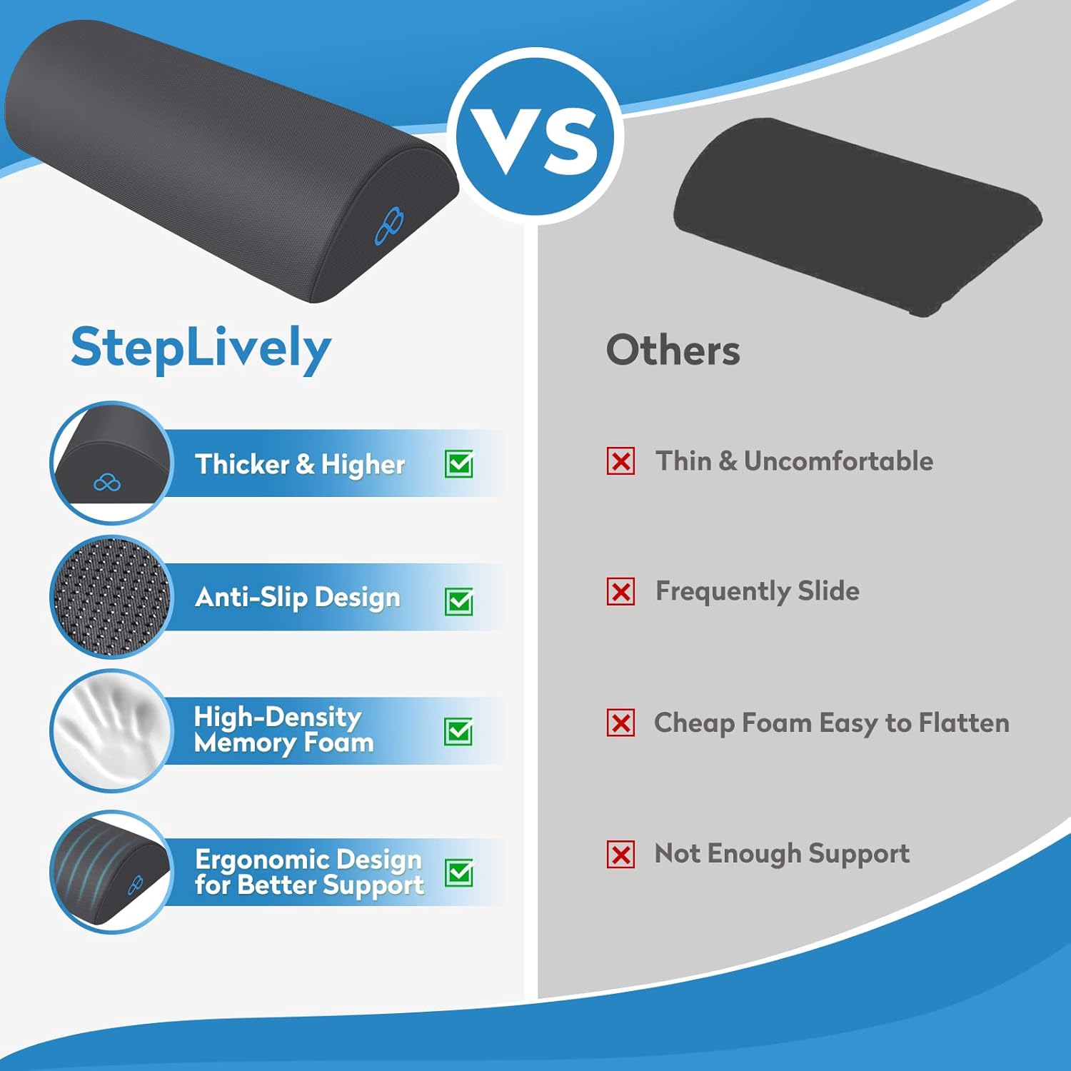 StepLively Foot Rest Ergonomic Pillow for Under Desk at Work, Anti-Fatigue Footrest Support Pillow for Fatigue & Pain Relief, Comfortable for Office Chair, Car Seat & Gaming Chair - Grey, Large