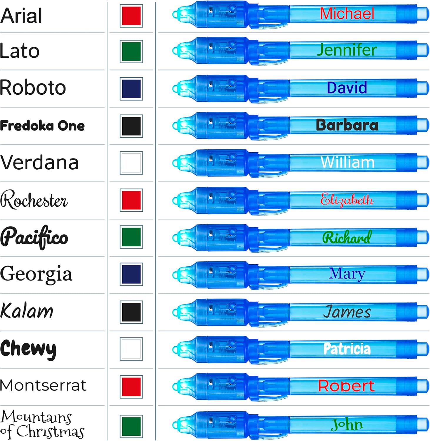 - GREAT GIFT FOR FUN PARTY FAVORS: These Personalized Invisible Spy Pens come in a pack of 12 Blue Pens to make the activity more exciting and fun.The color of the light is blue and it will display the words written in clear ink for all pens. Batteries are included and installed. Parents can buy these Spy Pens for their kid’s party at home. Schools, Teachers can buy it for students for a school Activity. Add it for any surprise gift bag or as Stock Stuffers.