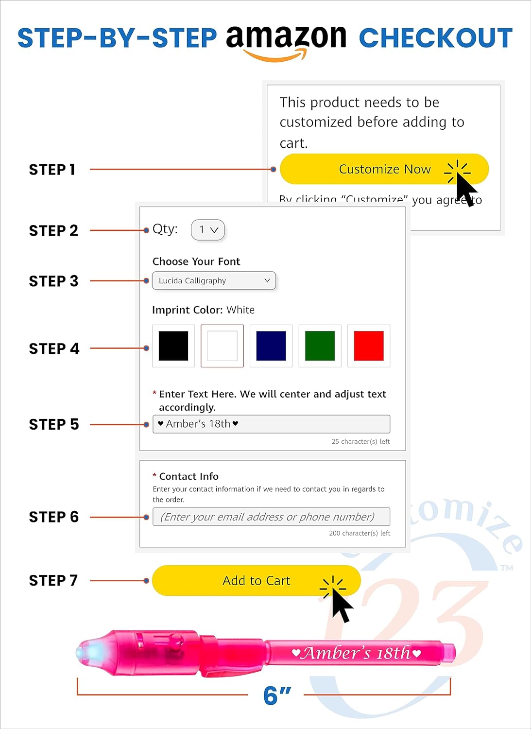 - 12 PERSONALIZED INVISIBLE PENS: Get these invisible pens personalized and have your favorite child feel super special with his name displayed on his spy pens! Click on the "Customize Now" Button to start customizing them according to your specifications!