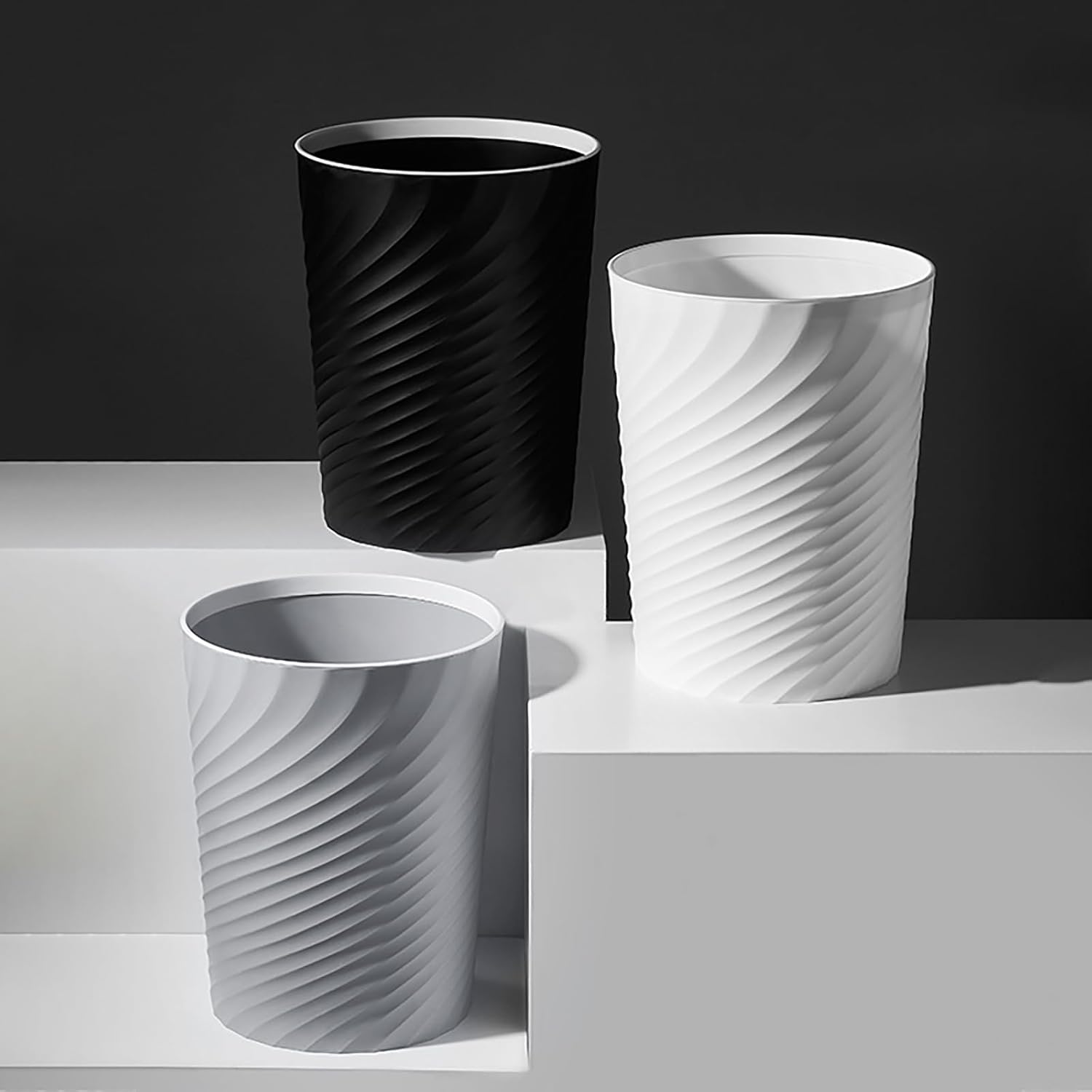 - 【HOME DECORATION】Bathroom trash can with a threaded design is simple and stylish, and can be used as a home decoration. The bottom is raised to reduce wear and increase service life.