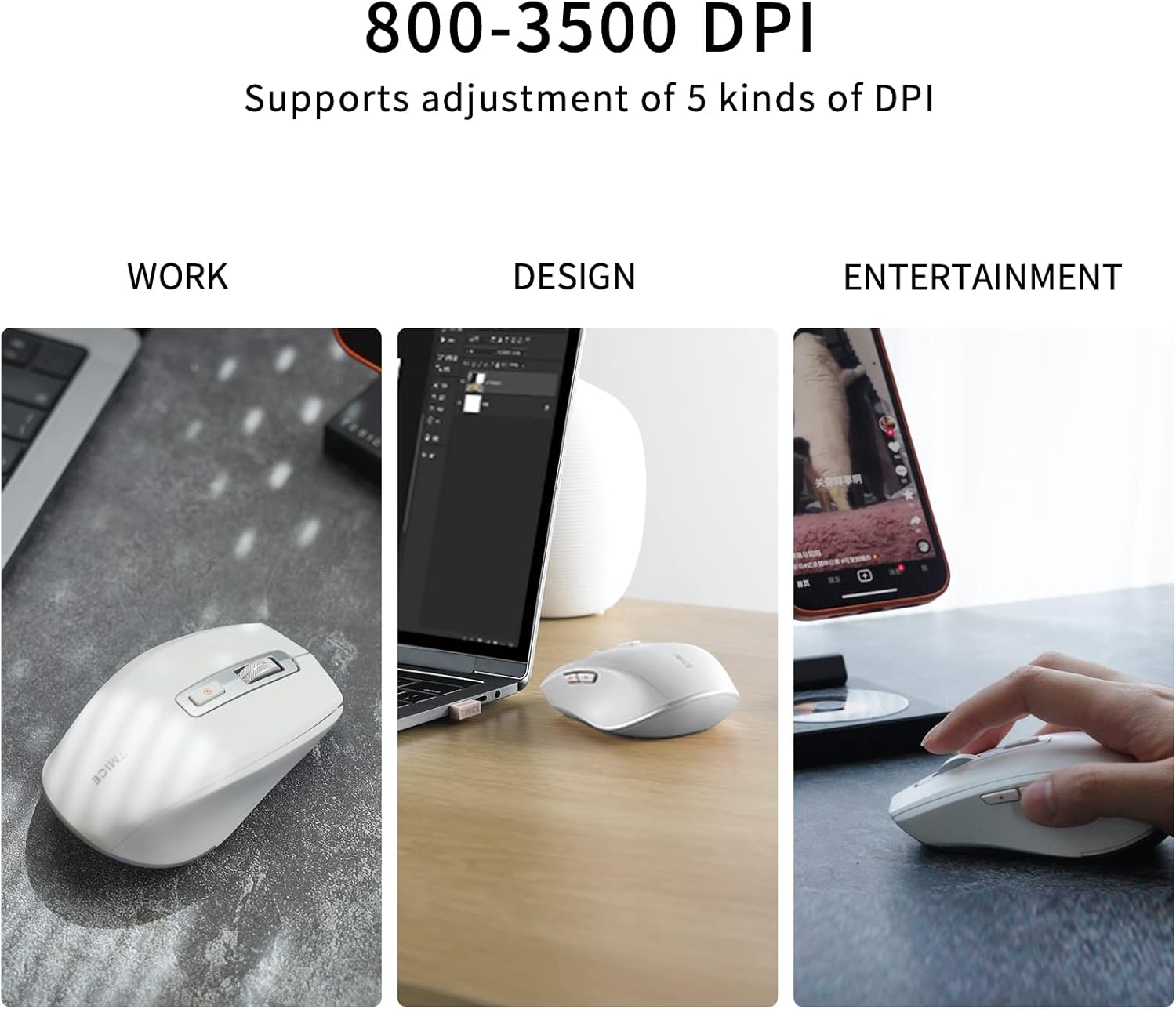 TMICE Wireless Bluetooth Mouse, Dual-Mode, 500mAh Battery, 5 DPI Adjustment, 10M Working Distance, White