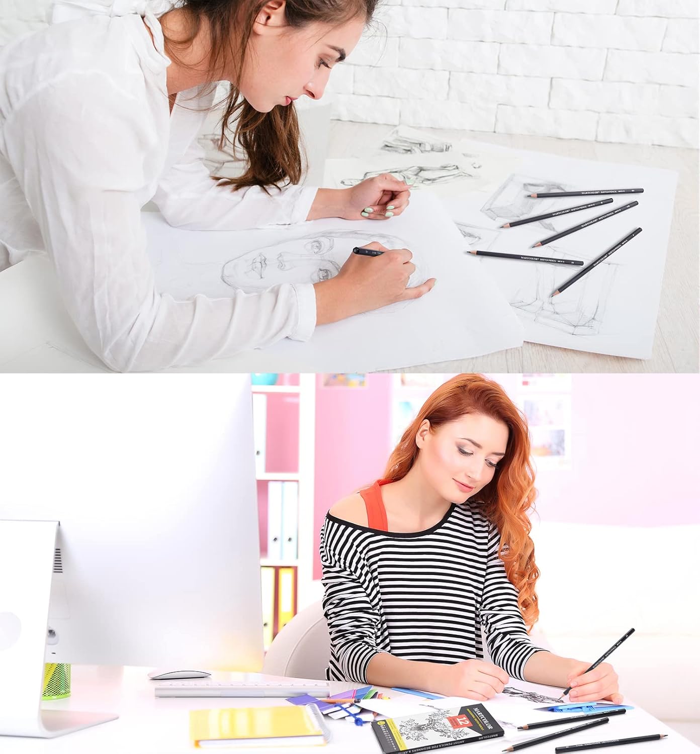 - NON-TOXIC DRAWING PENCILS SET: These drawing pencils set are safe, non-toxic, super pigmented, layered nicely, none cracked, The lead core extra smooth and break resistant, easy to sharpen and erase.