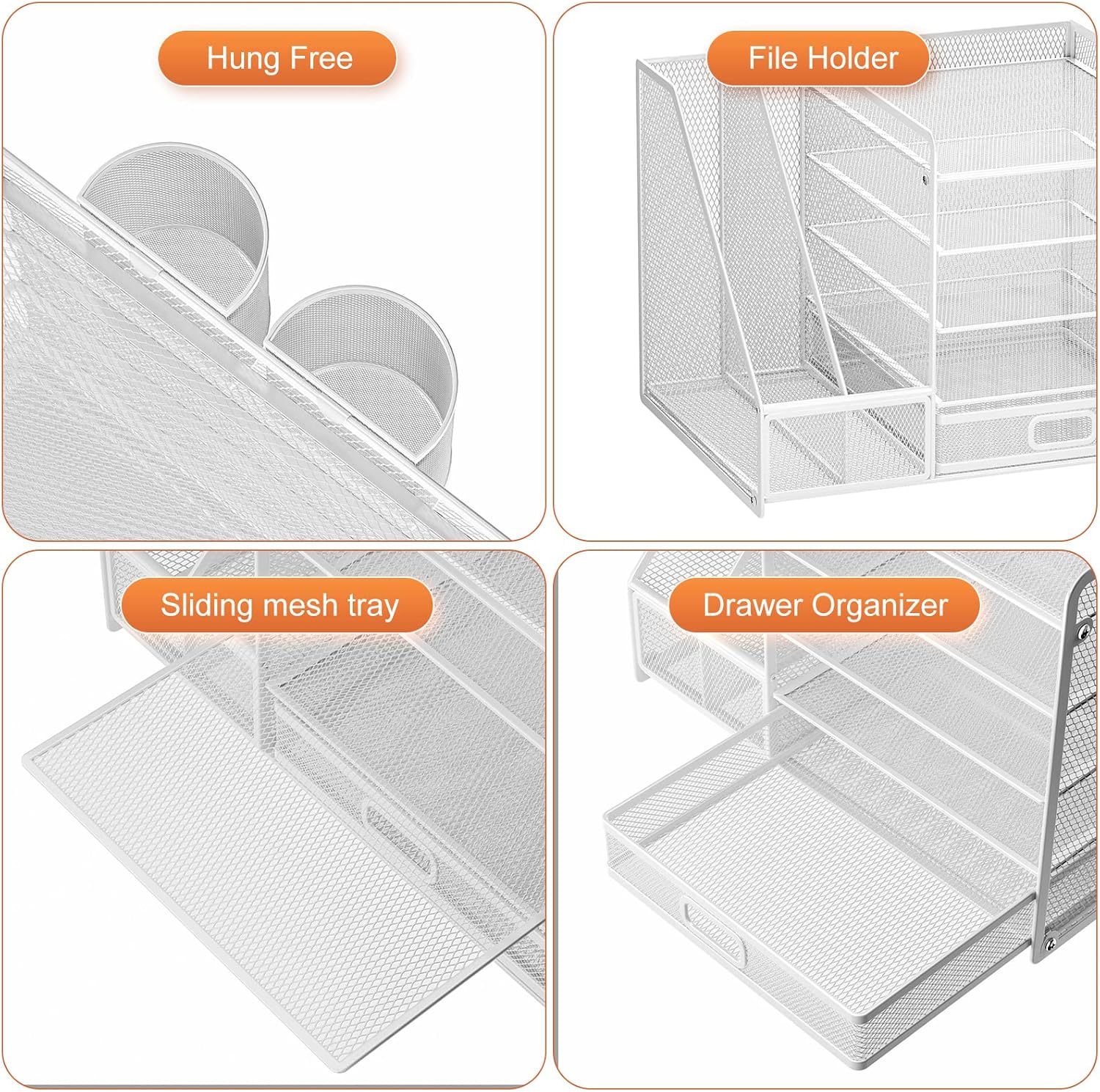 - ăIdeal Desk OrganizerăMarbrasse newly releases the desk file organizer! The humanized office organization owns 5 sliding trays + 2 Magazine Holders + 2 Hanging Pencil Holders + 1 sliding drawer which tidies up your desktop and is convenient to your office! All the designs specialized to comply with your office, such a perfect supplies desk organizer must be the best choice for your office accessories
