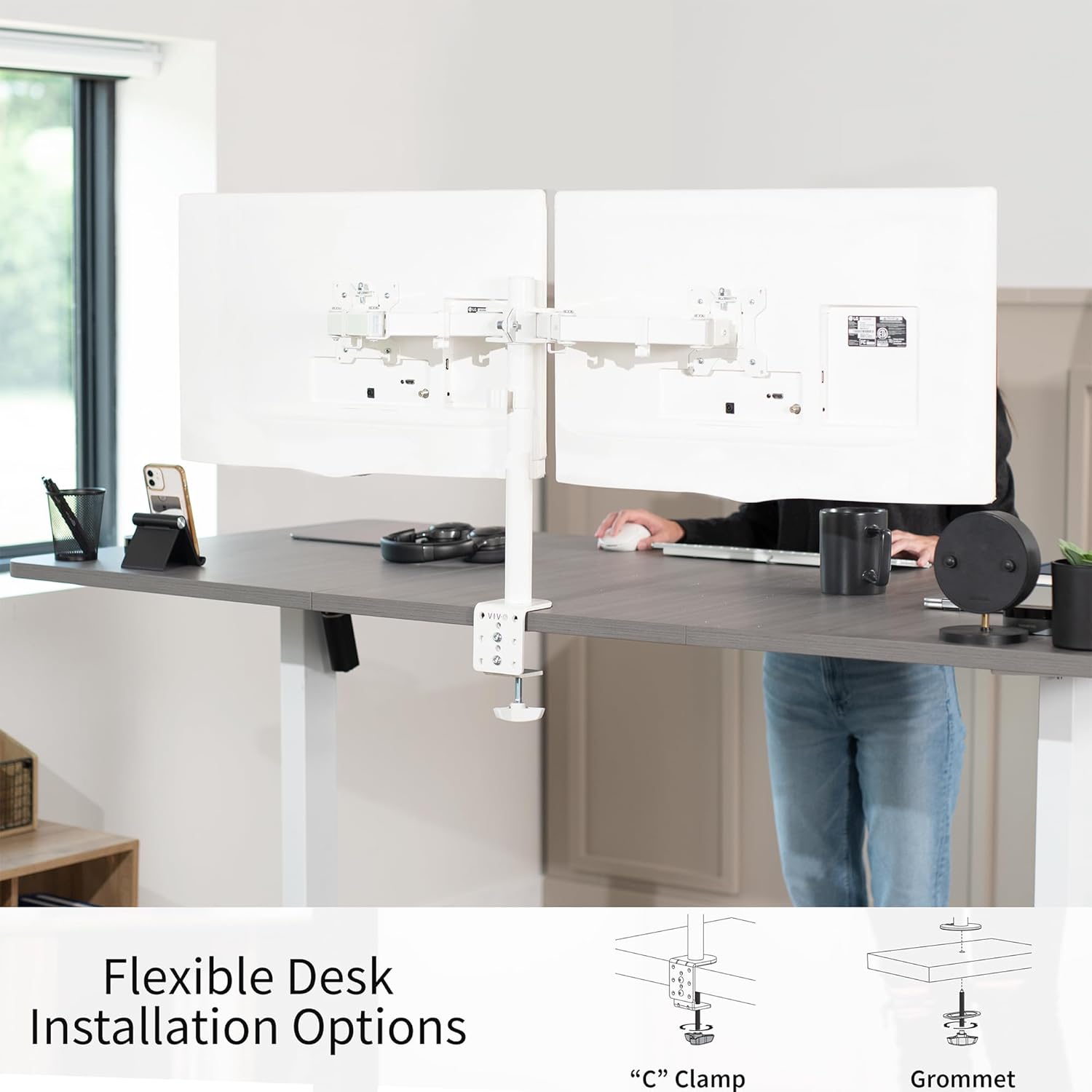 VIVO Dual Monitor Desk Mount, Heavy Duty Fully Adjustable Stand, Fits 2 LCD LED Screens up to 32 inches, White, STAND-V032W