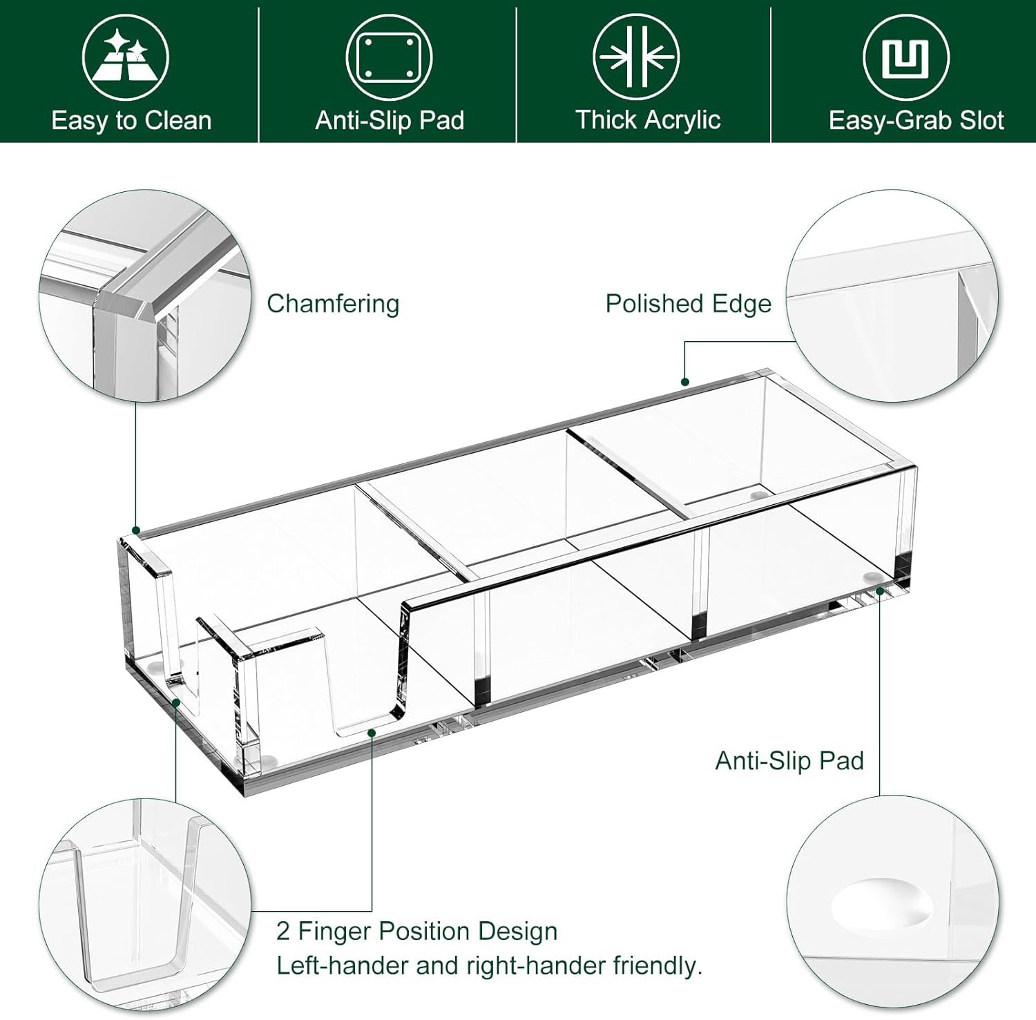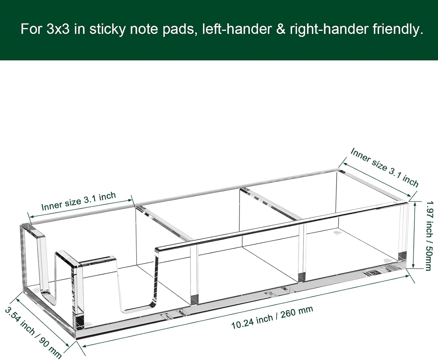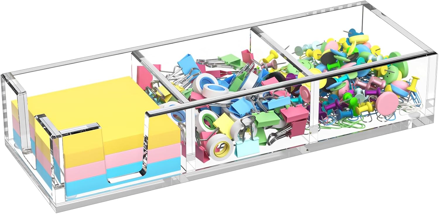 - Non-skid Silicone Pads - beneath each corner of the acrylic sticky note dispenser, make it stay in place with no slide or scratch on your desk. The solid acrylic memo pad holder is a great home office set up accessories decor, a good-to-have decent desk organizer.