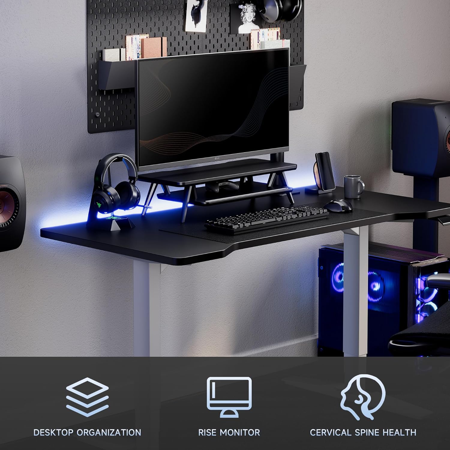 - 【2 Tier Desktop Organizer】At longest 23.6inch wide, It has a universal device holder slot and a high capacity compartments. You can easily store your office accessories & supplies under your monitor stand to keep your desktop tidy. Our monitor stand rise comes with cable management slots that can make your cord stay organized.