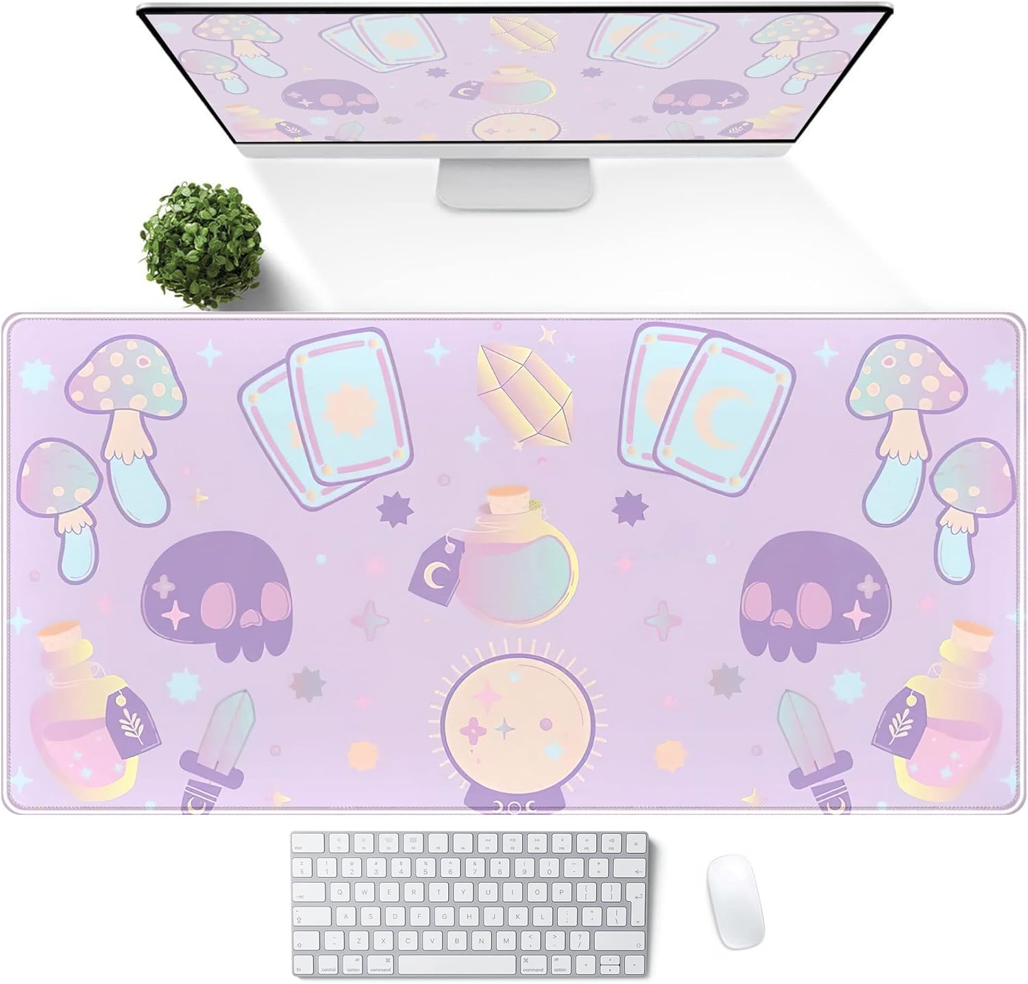 Kawaii Purple Desk Mat,Cute Witchy Elements Mouse Pad, Desk Pad Mystical Goth,XXL Gamig Desktop Mat,Extended Keyboard Mousepad Large for Computer Laptop,Girl Gamer Desk Decor 31.5''x15.7''