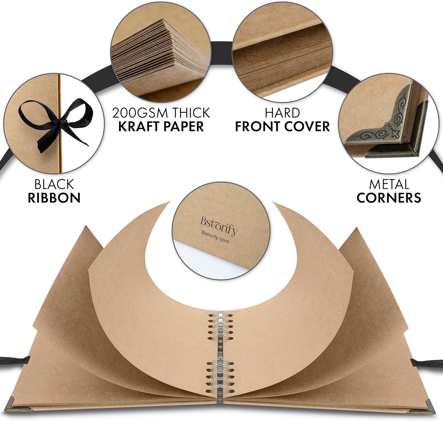 - The spiral bound spine allows the scrap book to expand to fit in your photos, postcards, souvenirs. You can tie the ribbon into a bow or other style that you like and make your photo album scrapbook as individual as your memories and keep them endlessly