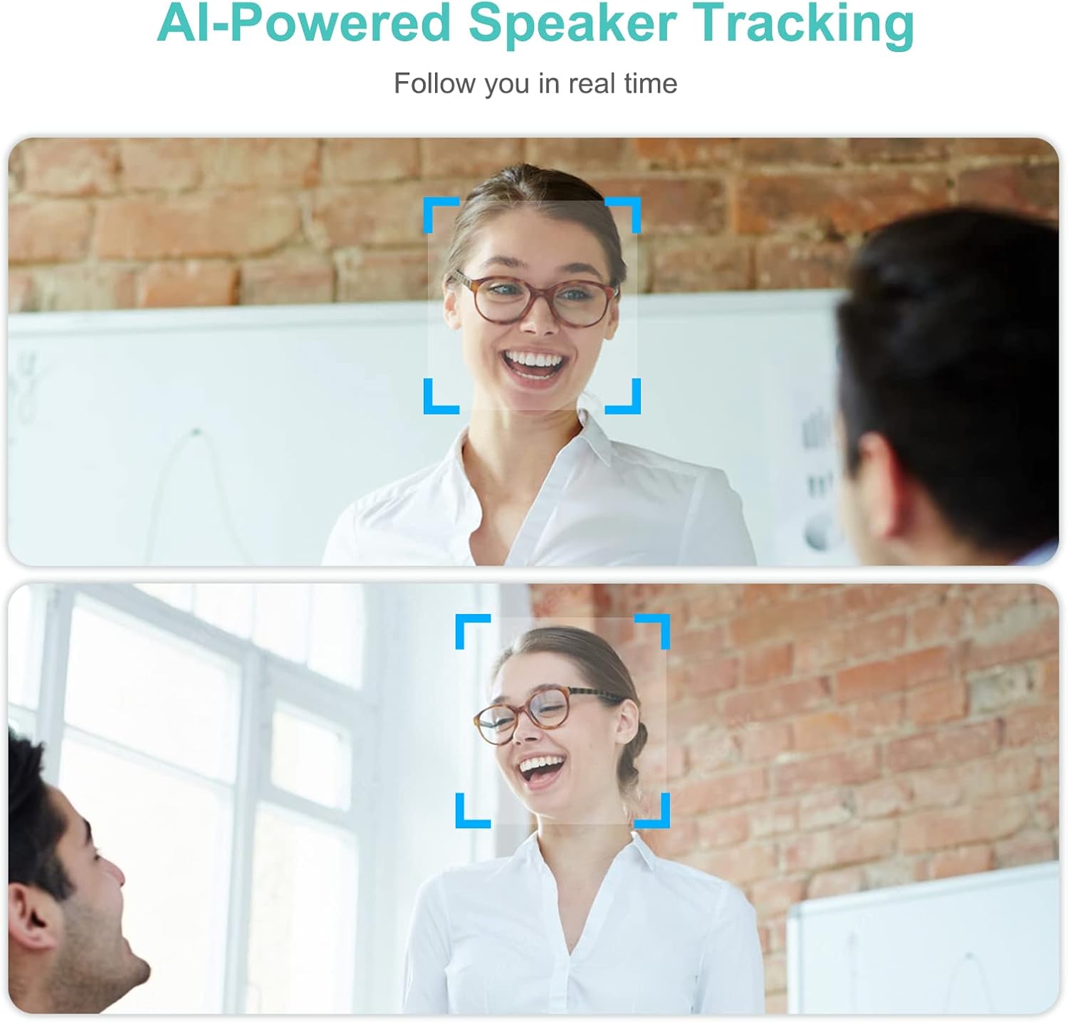 - Auto Speaking Following - With presenter tracking, it intelligently detects and follows a presenter, and the webcam will automatically follow the person who is speaking.