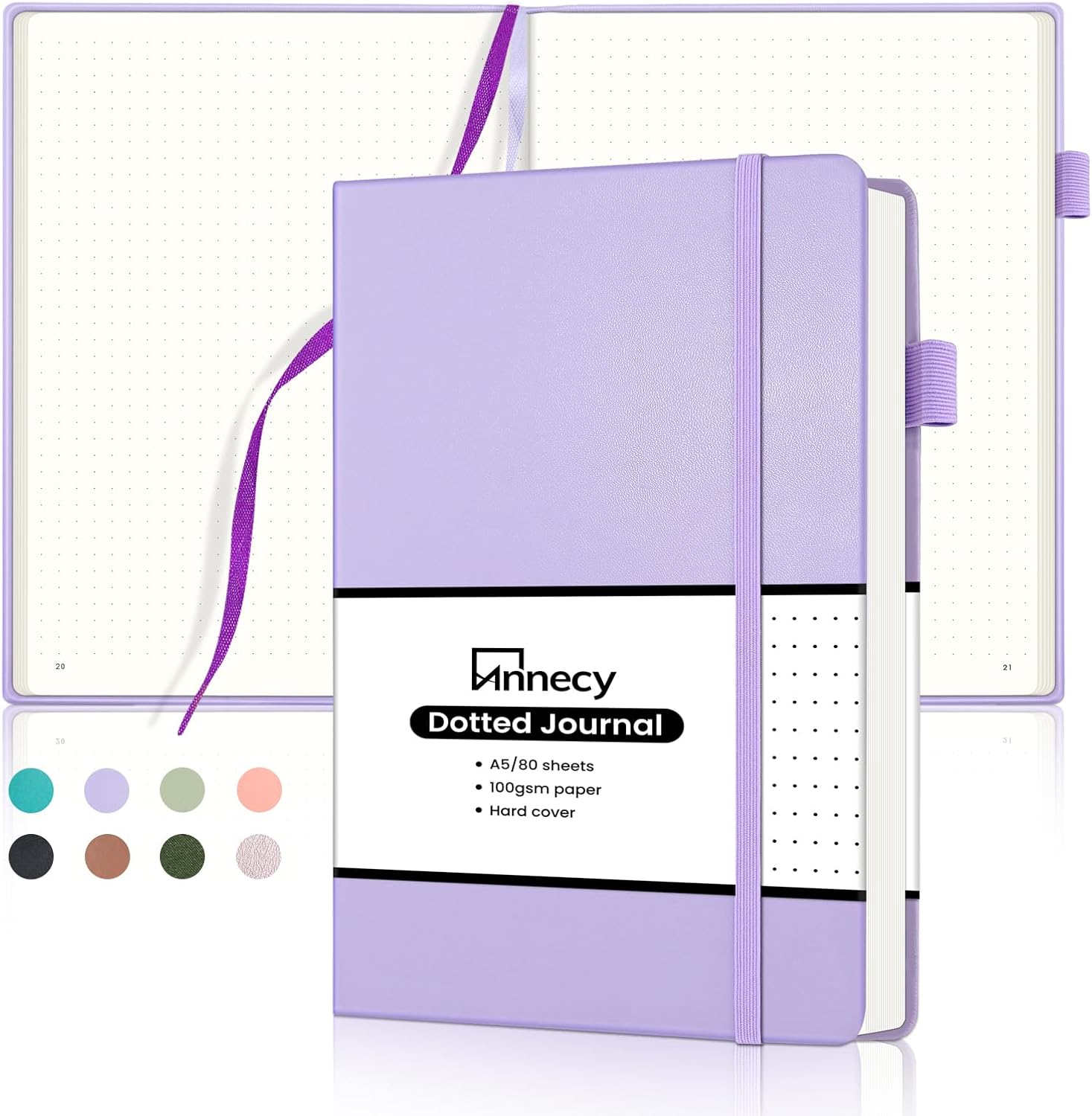 Annecy Numbered Bullet Dotted Journal Notebook, Medium 5.5x 8.25, 160 Pages 100GSM Writing Paper, A5 Purple Faux Leather Cover with Pen Loop