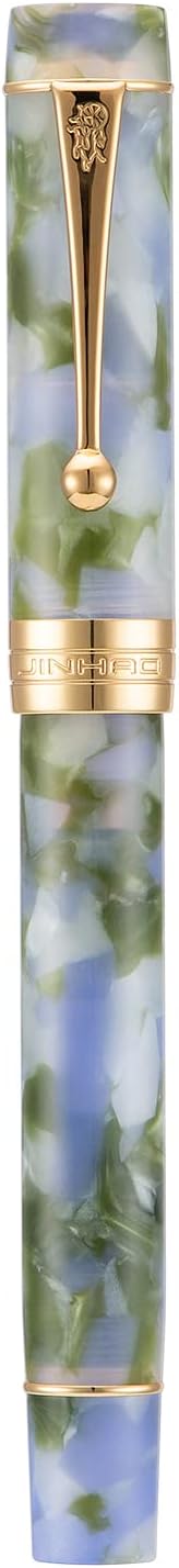 Jinhao 100 Fountain Pen Celluloid Classic Style, #6 Nib Smooth Writing Instrument with Refillable Converter and Pen Case Set