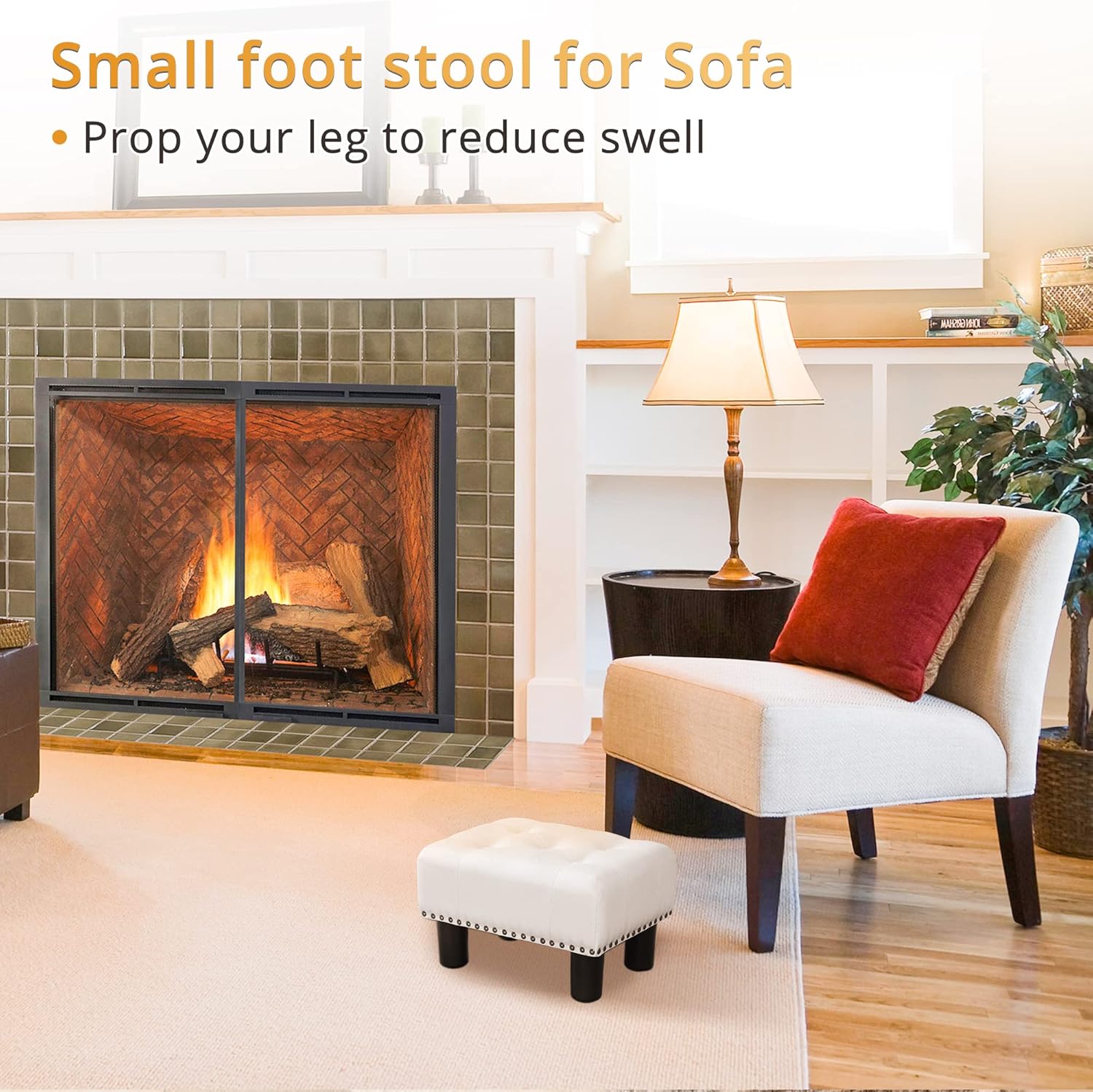 - ăELEGANT DESIGNăThe small ottoman has tufted design on top, which bring elegant and good looking. The surface of this gootstool use soft and skin-friendly fabric, you can touch it to feel comfort and pop your leg on it to reduce swell after daily work.