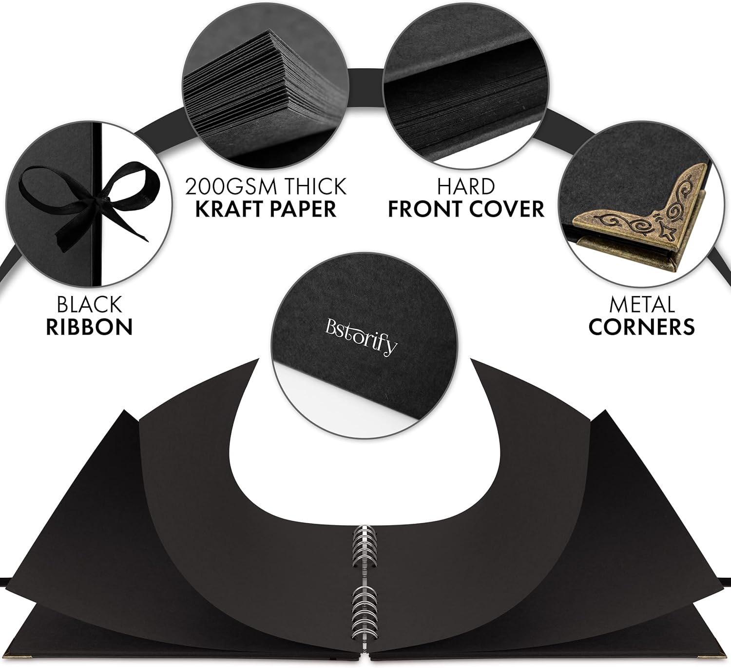 Bstorify Large Scrapbook Photo Albums 50 Pages (11 x 8.5 inch) Black Thick Kraft Paper, Memory Book - Ideal for Your Scrapbooking, Art & Craft Projects