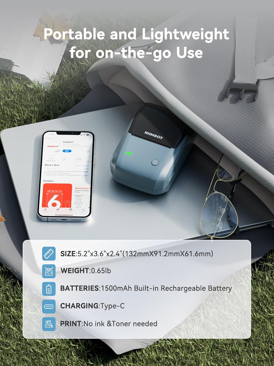 - Portable and Rechargeable: The portable thermal label printer weighs just 293g, making it compact enough to fit in your pocket and easy to carry anywhere. It features a built-in 1500 mAh rechargeable battery, providing up to 100 days of standby time on a single charge.