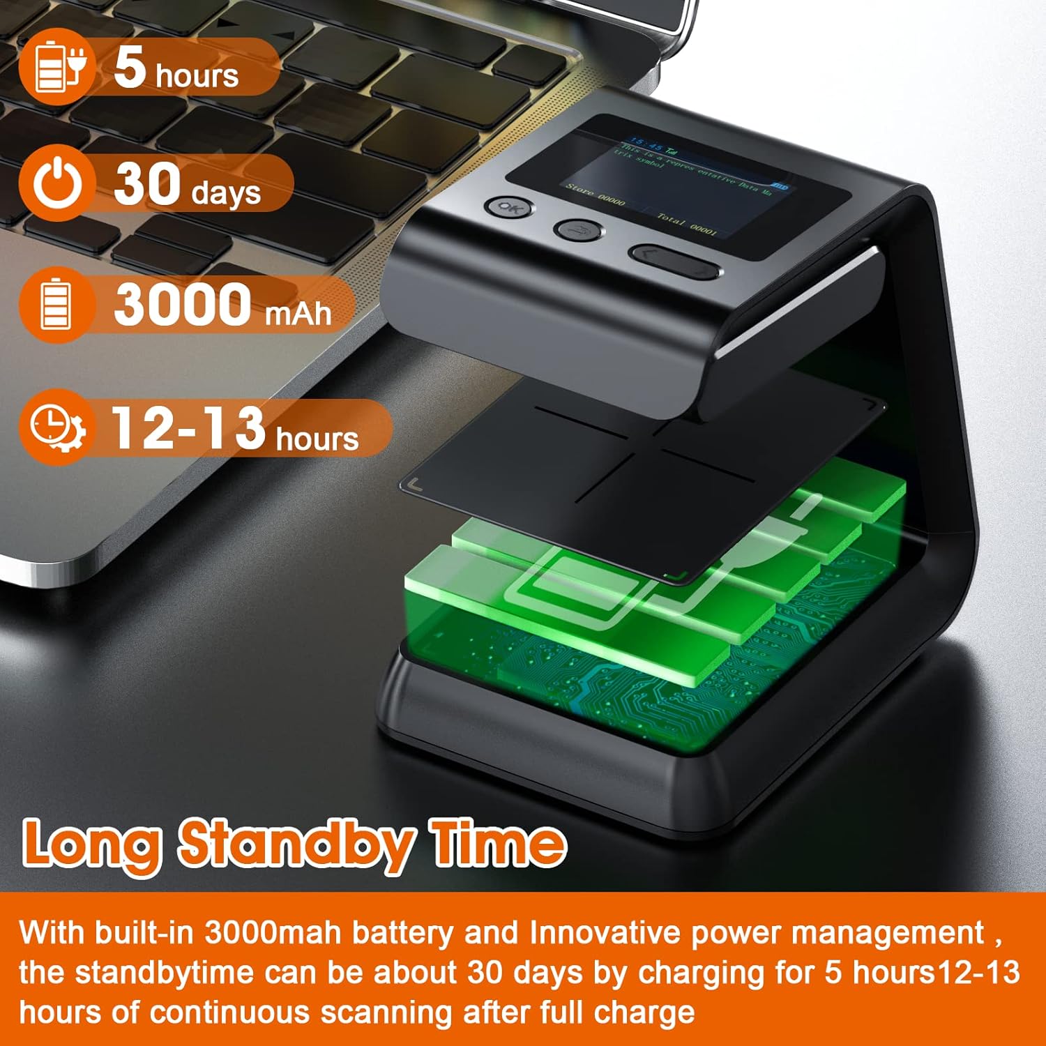 - 3000mAh battery : Large built-in 3000mAh battery , Superior battery power management delivers the largest number of scans per battery charge to support scan intensive applications . for the ticket window at a train station airport and so on.