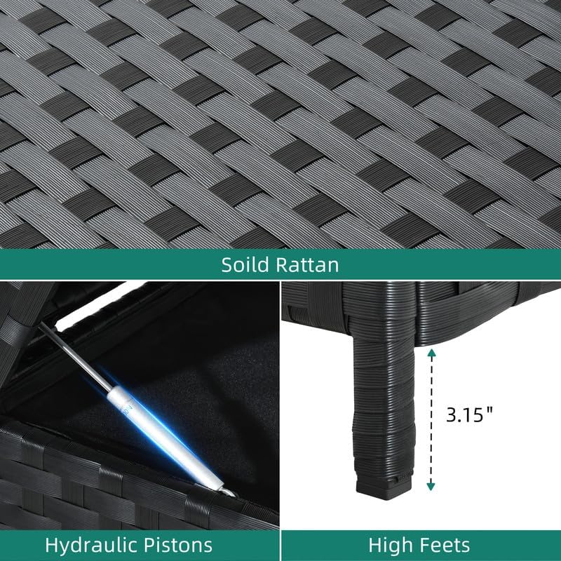 YITAHOME 230 Gallon Wicker Deck Box, XXL All-Weather Outdoor Storage Box, Rattan Storage Bin for Patio Furniture, Outdoor Cushions, Pool Storage and Garden Tools - Black