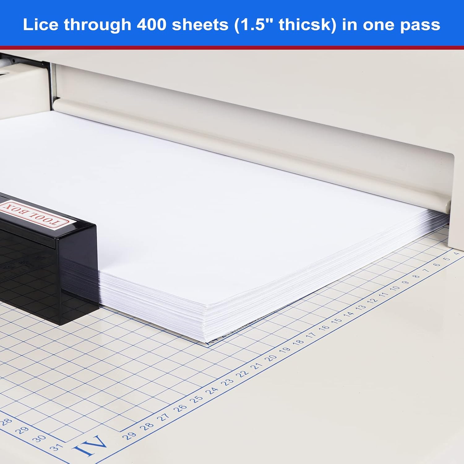 - ★【Wide Application】Paper cutter heavy duty with a maximum cutting length of 12” allows to cut up to 400 sheets of paper (for 80g A4 Paper) once; Besides common paper, our heavy duty paper cutter can also cut something like soft PVC, leather, non-woven fabric, bubble film, fabric pearl cotton and etc, meeting your different cutting needs to the greatest extent& suitable for homes, classroom, offices, companies, printing factories, copy shop, etc..