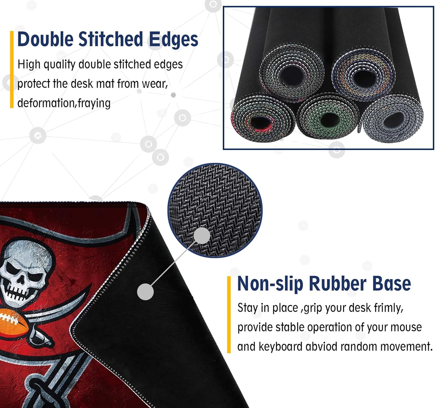 - 【 Non-slip Rubber Base 】With rubberized non-slip grip and texture, letting you use this mouse pad on any surface. While sturdy, it's flexible enough to be rolled up for easy transport, to move around so you can work or game wherever you want. The rubber base keeps the entire surface in place preventing the cloth from bunching up to maintain smooth mouse movement across the entire desktop.