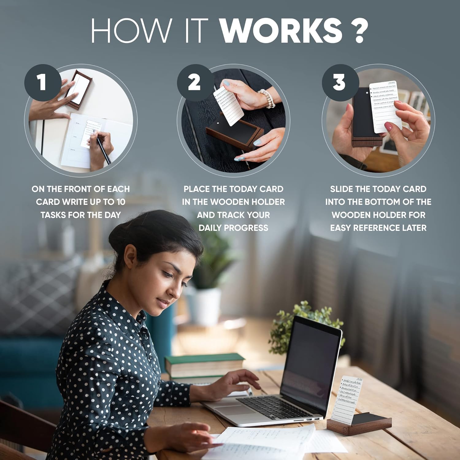 - ππππ πππ ππππππ-πππππ πππππ πππππ: Mind Designβs work focus planner kit includes 120 daily checklist cards, 10 goal cards, 2 legend cards, 1 wooden box for storage and a metal divider with magnets to display your to-do cards and store completed cards.
