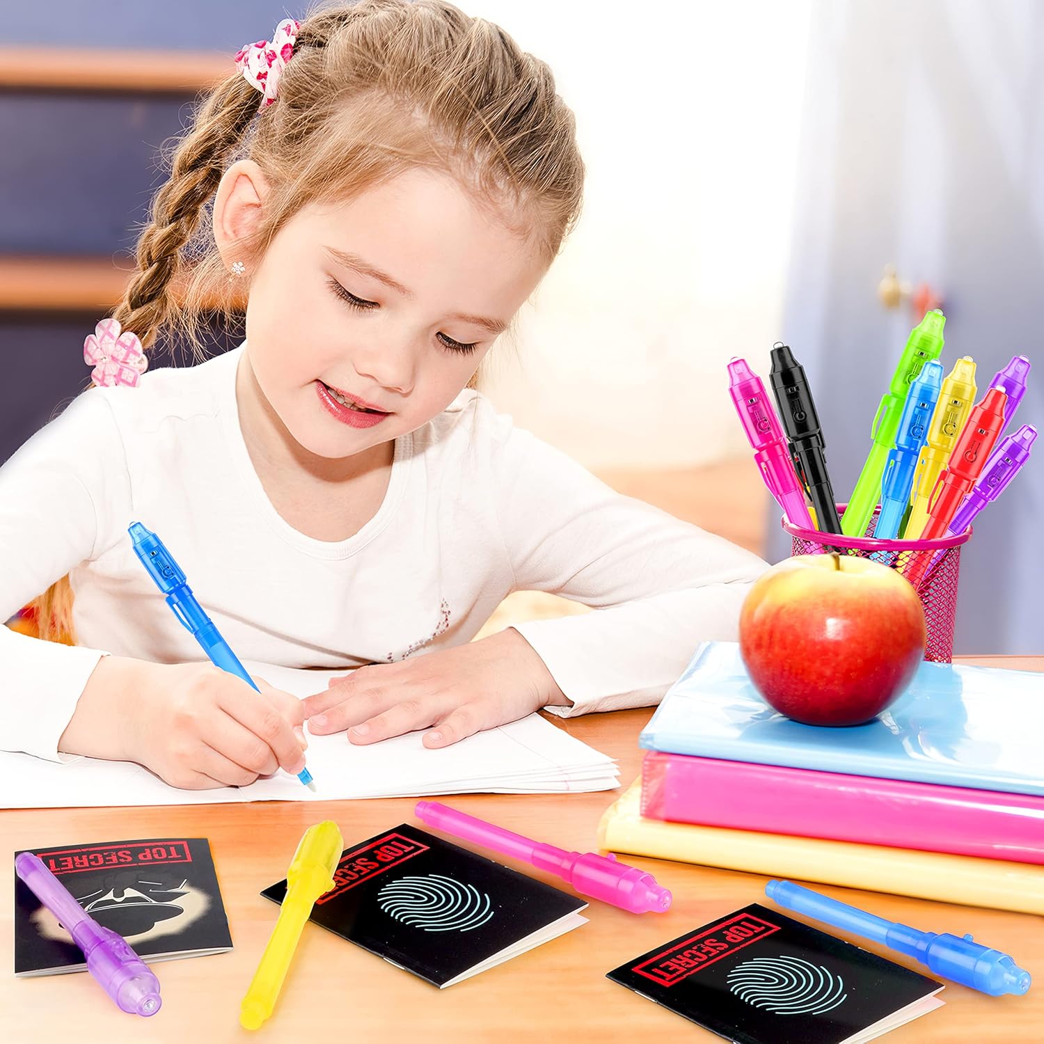 GIFTINBOX Invisible Ink Pens with UV light for Kids, Spy Pen Party Favors for Kids 8-12, 24Pack Invisible Ink Pen and Notebook, Magic Marker for Secret Message Birthday Party Favors for Kid 4-8
