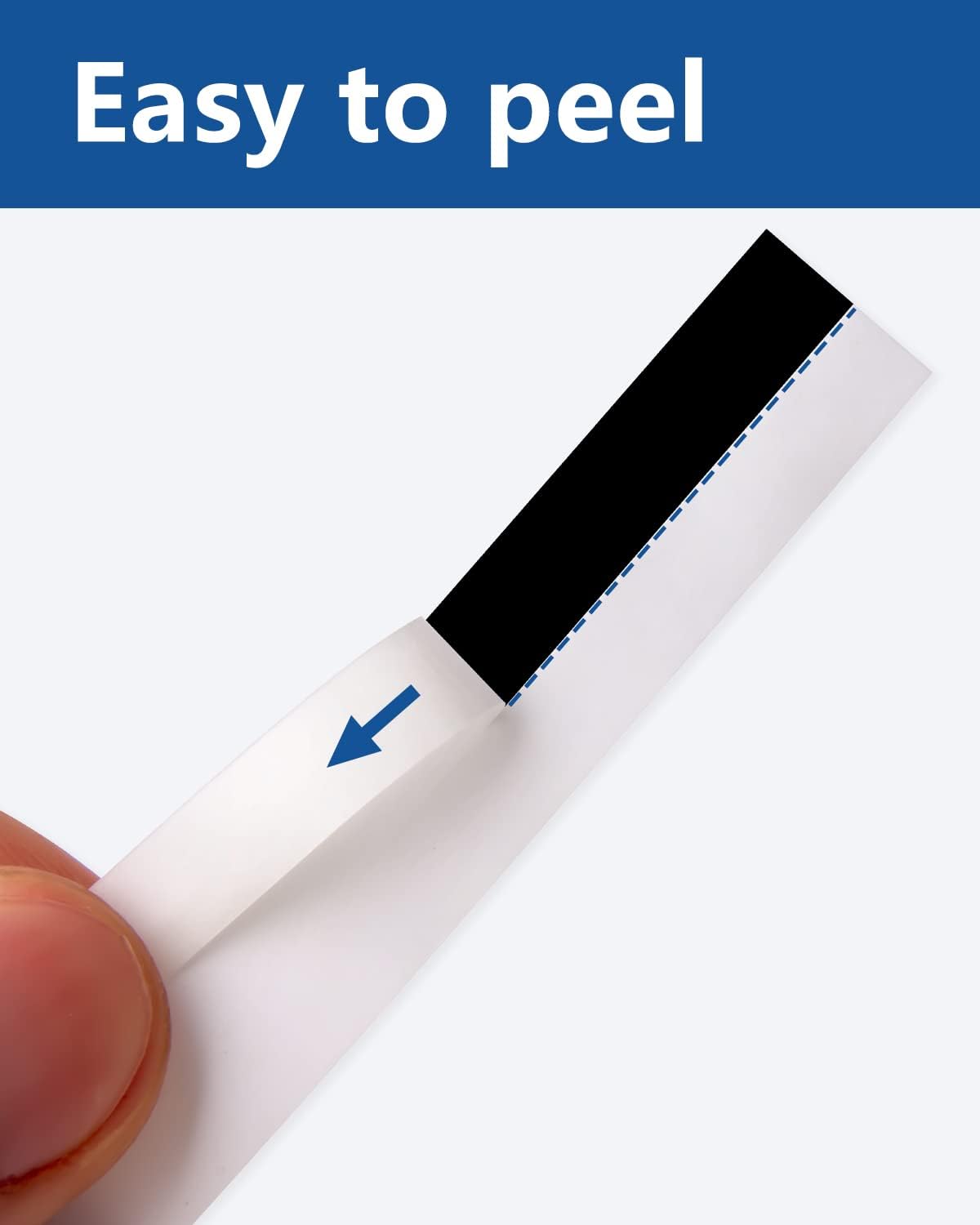 - These compatible for brother label maker tape 12mm 0.47 TZe-335 TZe335 have strong adhesive and no sticky residue when you remove it. The split back design of ptouch label tape 12mm black tape is very easy to peel off