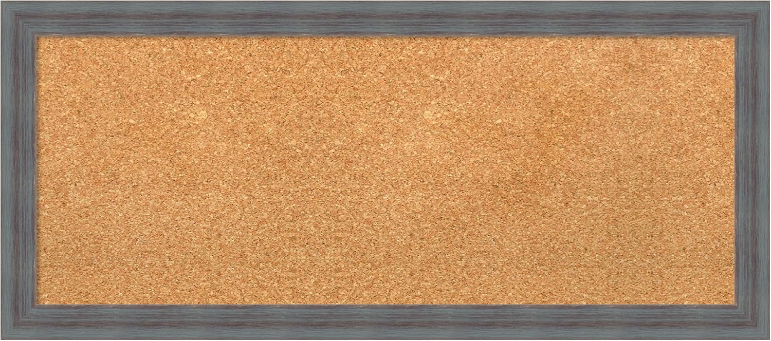 Amanti Art Natural Cork Board for Wall, 14x32 Vision Board with Blue Wood Frame, Medium Corkboard Office Decor for Home Organization, Rustic Farmhouse Corkboard Pinboard to display items for home