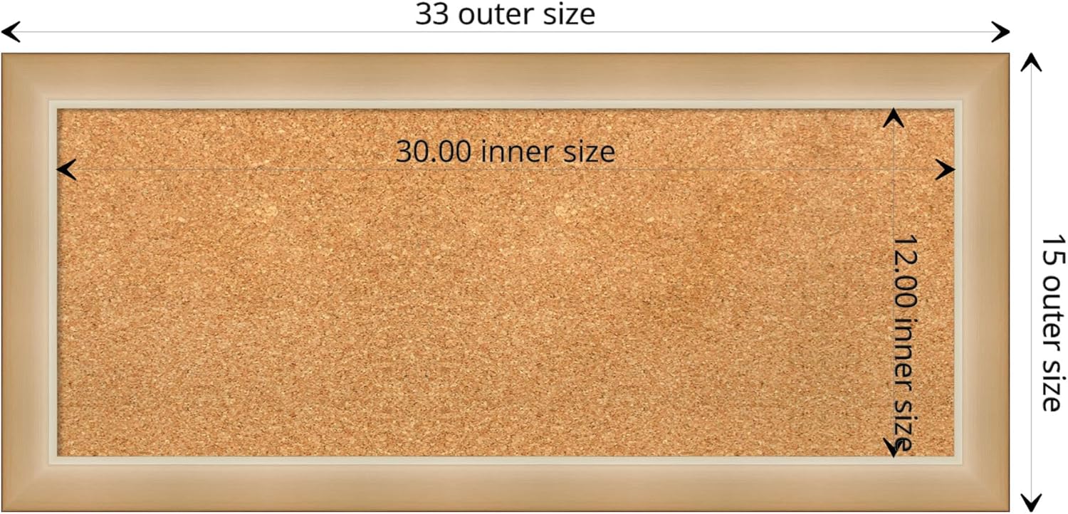 - DIMENSIONS: The overall size of this framed cork board measures 33 in. x 15 in., including the frame. Its functional cork board area measures 30 in. x 12 in.