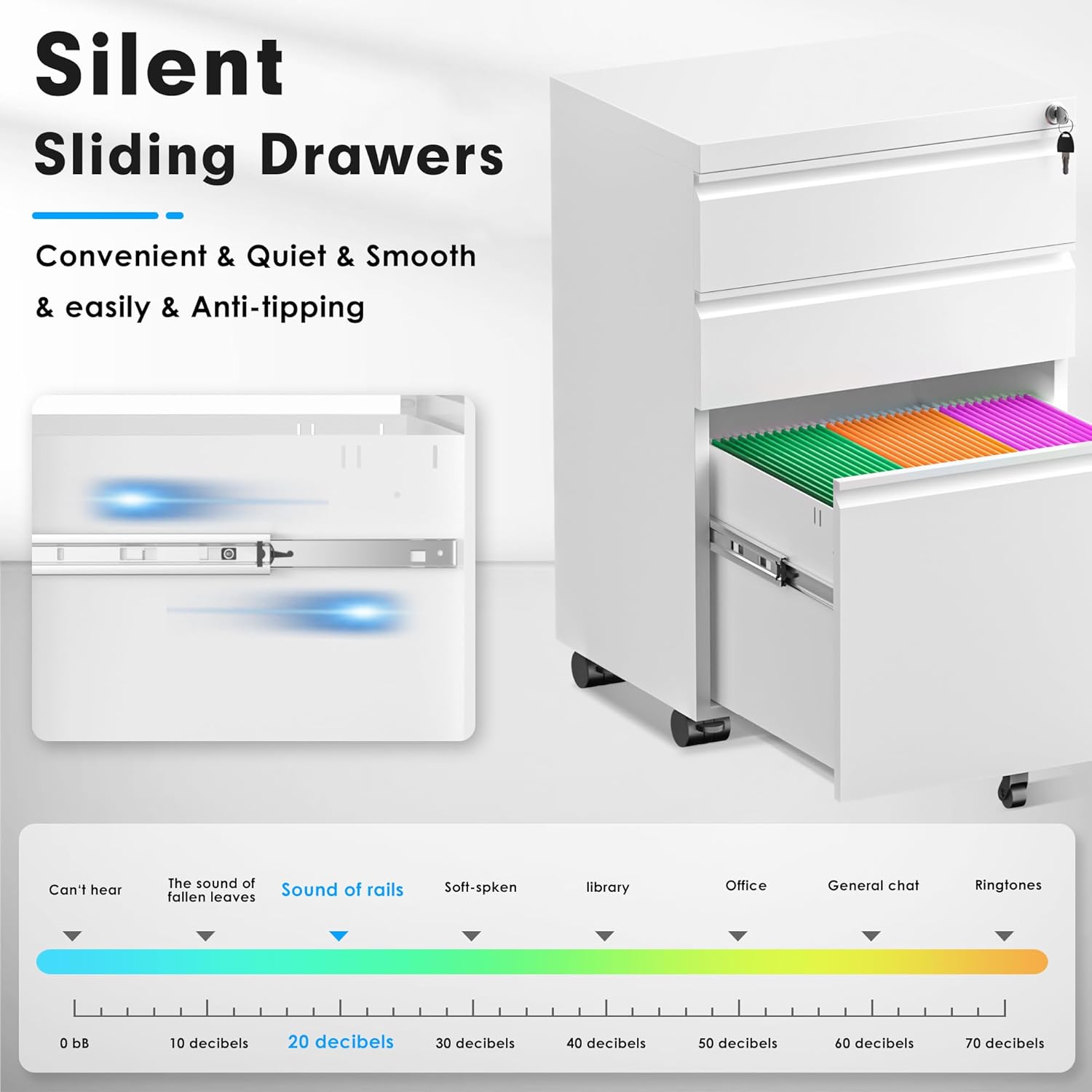 - ❤All for Improving Office Productivity -- Overall size:16" W×13"D×21.7"H, perfect size make the white file cabinet can be put under desk or side table or small spaces to save space, 5 smooth anti-tilt casters can be rotated 360°and locked, flexibly adapting to the all kinds of office floor. 1 stationery tray is included, you can use it to organize small office supplies. Unique pull-out handles are easy to grab. All for improving office productivity and efficiency!