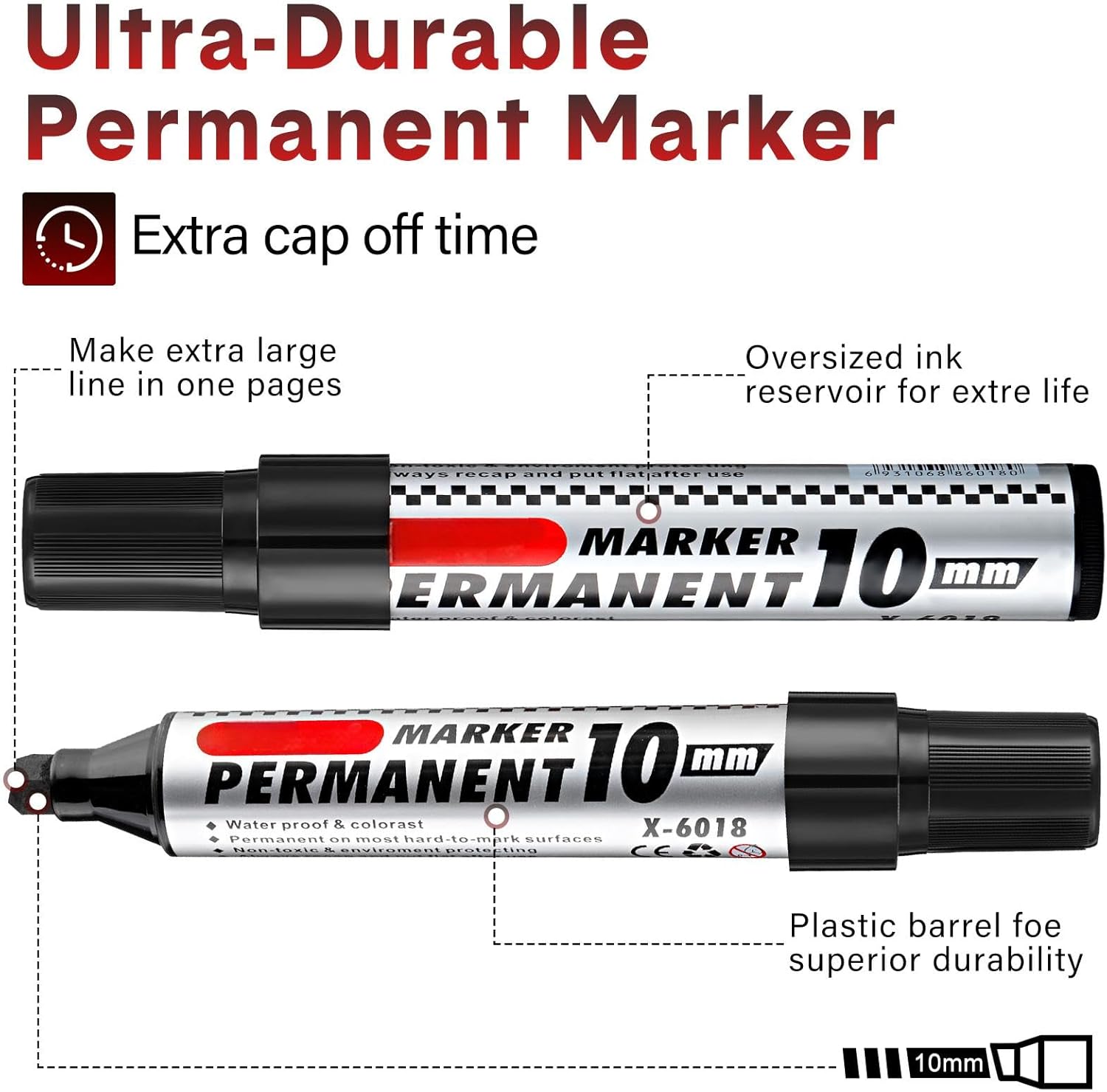 - Practical Chisel Tip: each black permanent marker comes with a chisel tip, which can draw wide and highly visible lines; This chisel tip enables you to mark or draw on almost all surfaces, and the contents you mark are visible from different angels