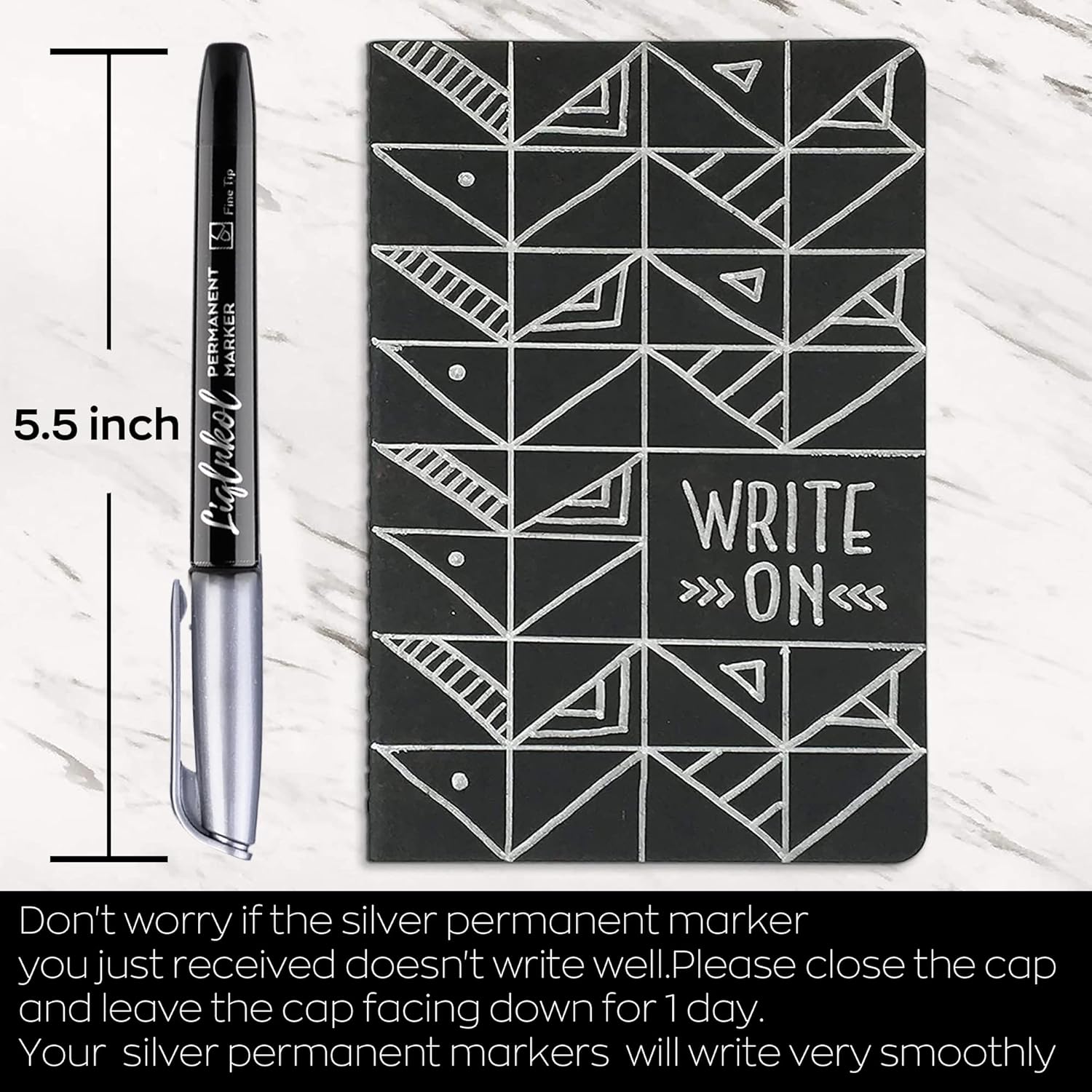 - Quality Material:LiqInkol Silver Metallic Permanent Markers are made of high-quality water-based ink, The point is fine, the writing is smooth, the color is vibrant, and the metallic luster is emitted. Suitable for opaque dark color paper, excellent effect on dark material.