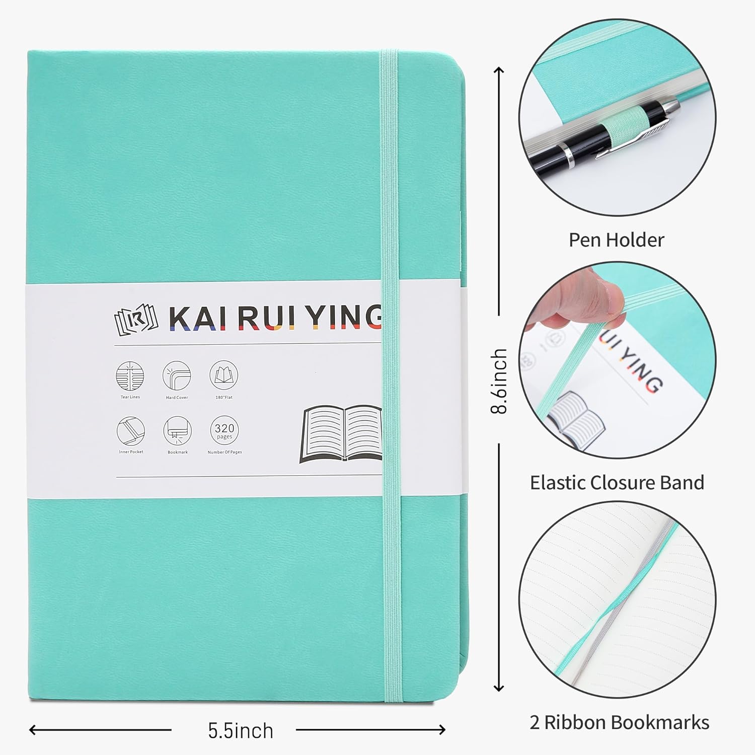 - 🌈【Multifunctional Accessories】⭐This classic 5.6" x 8" vegan leather journal features a durable and water-resistant cover, 320 college ruled lined pages, inner expandable pocket, pen holder, ribbon bookmark & elastic closure band