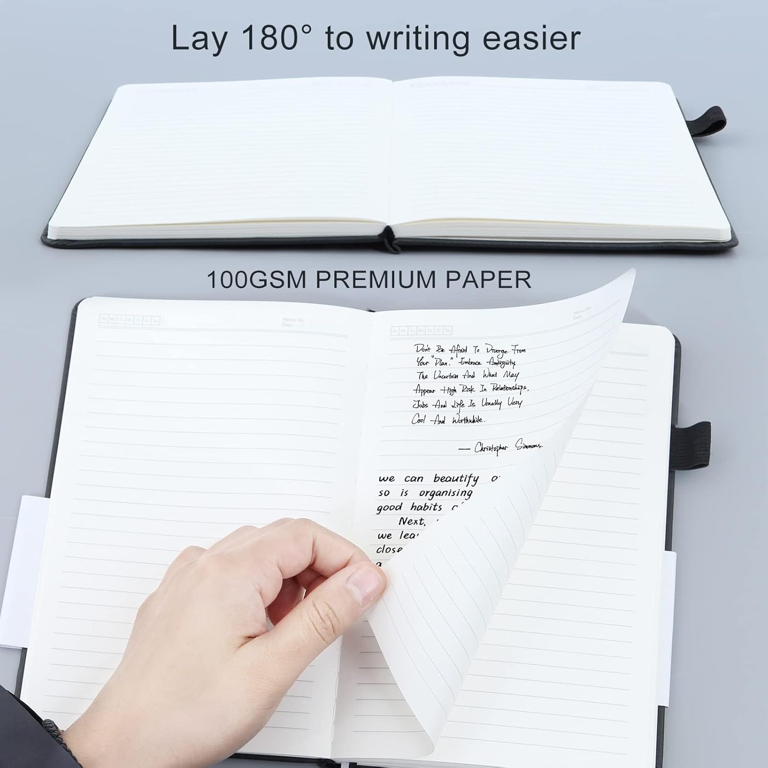 - 🌈【Multifunctional Accessories】⭐This classic 5.6" x 8" vegan to do list notebook features a durable and water-resistant cover, 160 college ruled lined pages, inner expandable pocket, pen holder, ribbon bookmark & elastic closure band