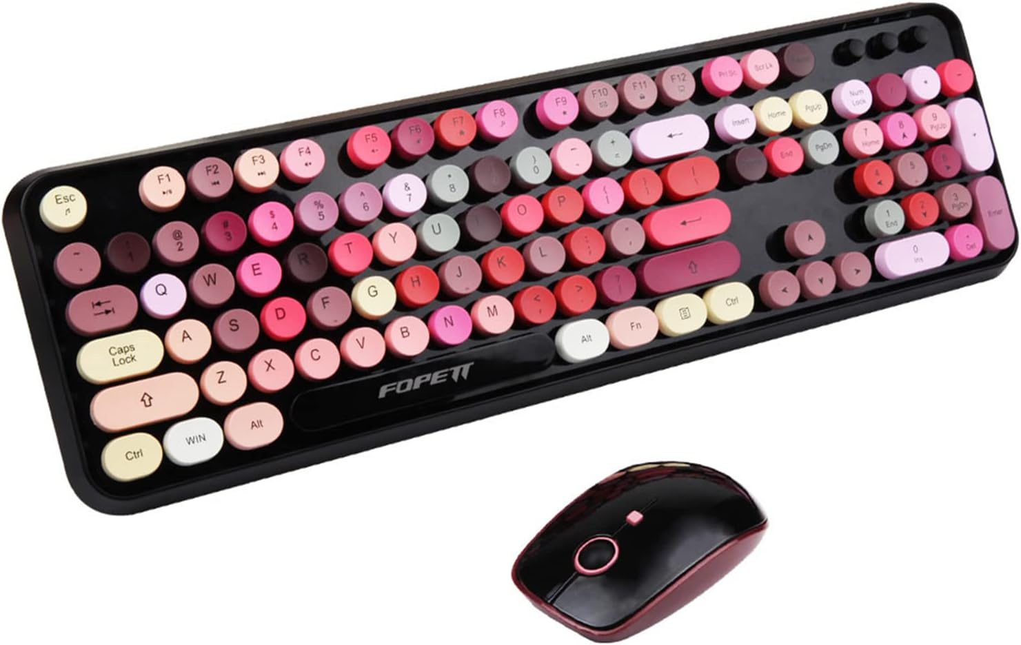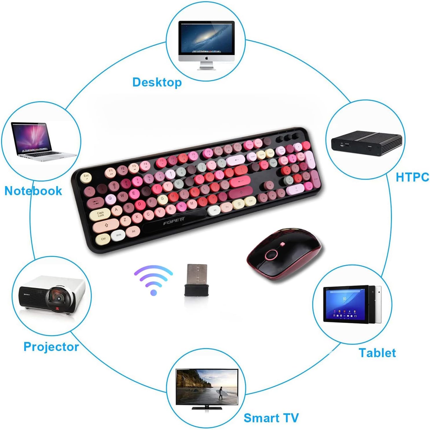 - 【 Wireless Keyboard Mouse Combo】The inspiration for these cute rounded keys comes from vintage typewriters offering you visual enjoyment and a retro feeling to type. With colorful key caps, make you be distinctive in the office and work full of fun.