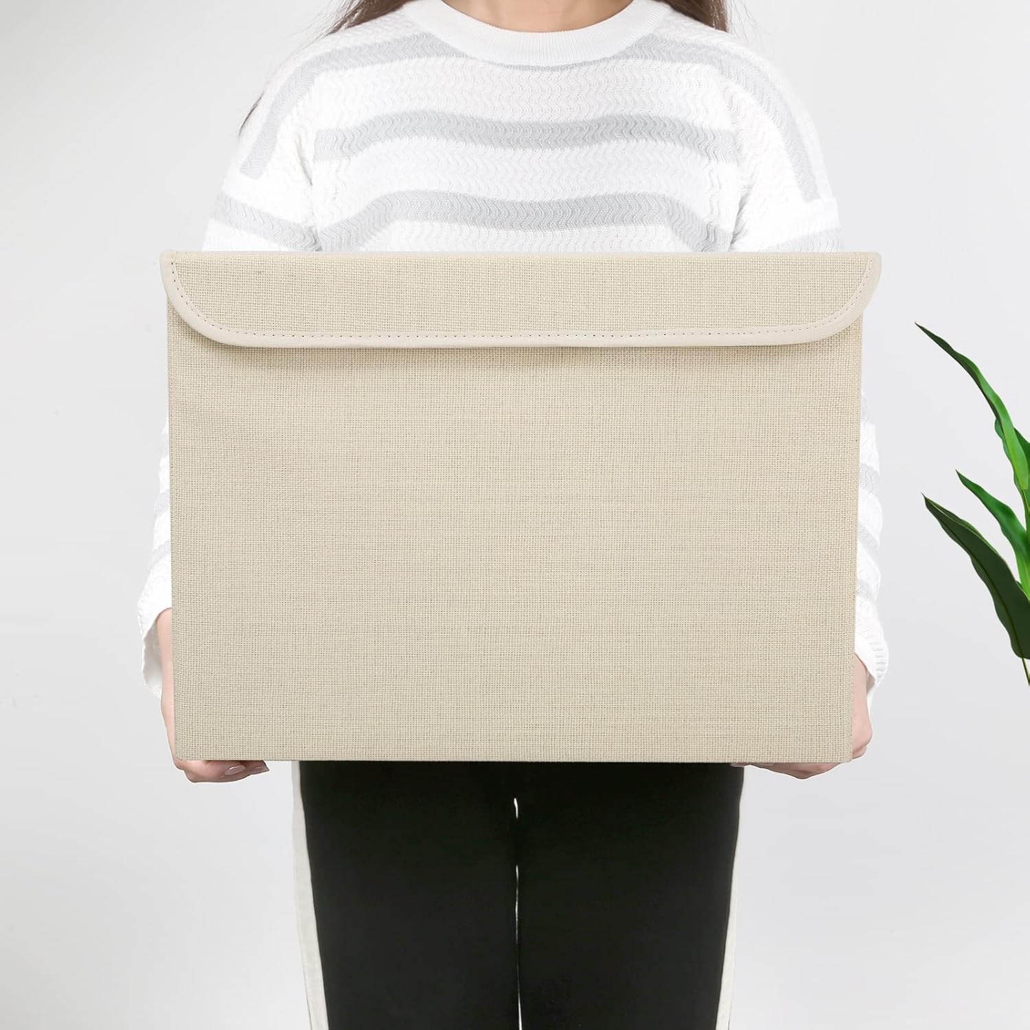 Large 42 Quarts Collapsible Stackable Storage Bins Cube with Lids [3-Pack] Foldable Fabric Linen Storage Boxes, Closet Organizer Baskets with Label for Home (16.7 x 12 x 12", Beige)