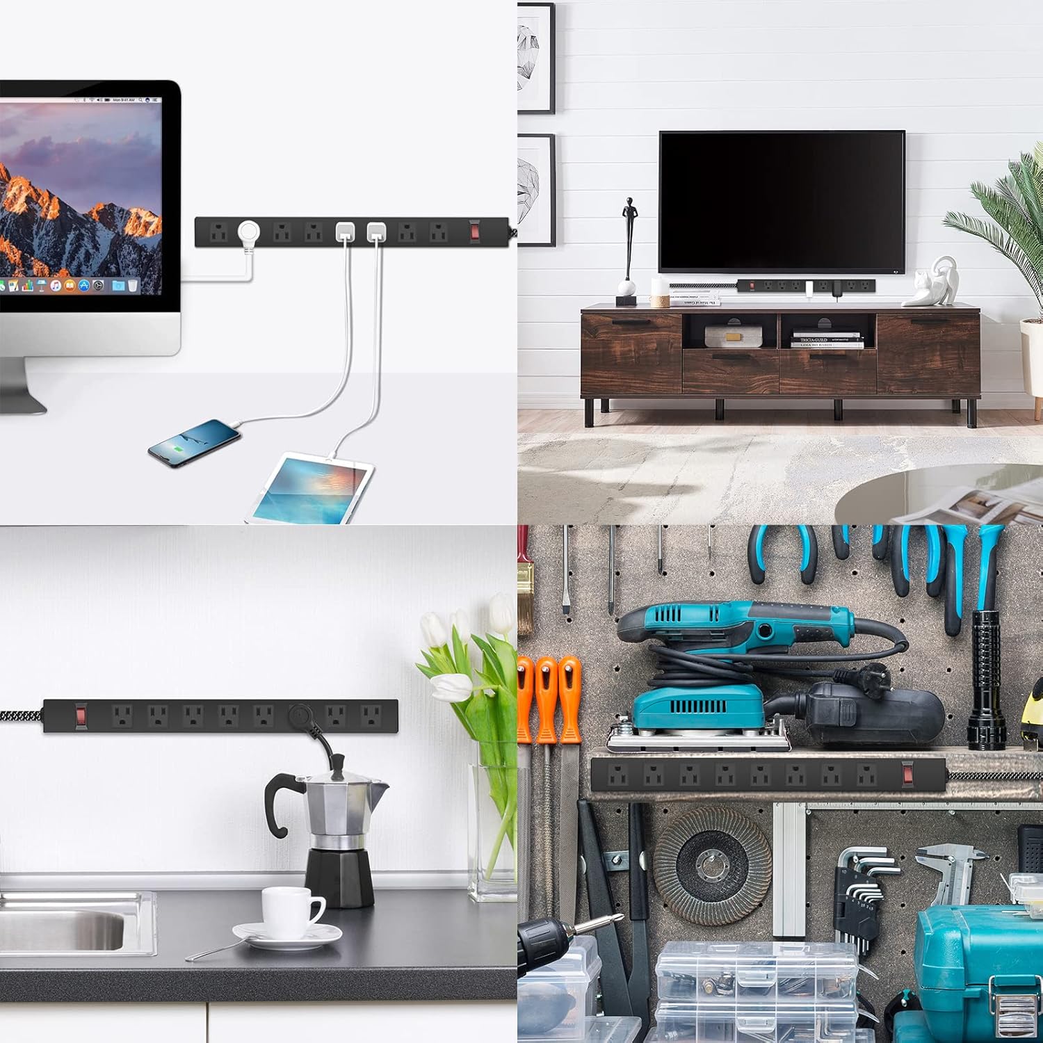 - 【Easy Wall Mounting】Featuring 4 screw holes at the back, this wall mount power strip can be easily mounted to any desired location. Whether in your office, living room, or garage, it provides flexible and convenient access to power sources.