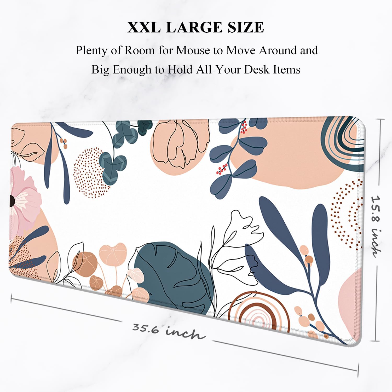 Auhoahsil Large Gaming Mouse Pad, Flowers Theme XXL 35.4 x 15.7 in Desk Pad Stitched Non-Slip Rubber Long Computer Mousepad Thin Extended Full Size Desk Mat for Desktop Laptop Wireless Mice, Pink