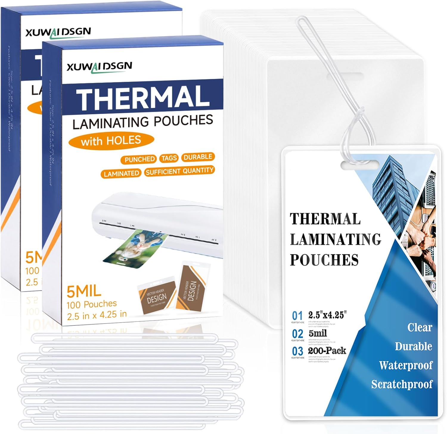 XUWAIDSGN 200 Pieces 5 Mil 2 1/2" x 4 1/4" Laminating Luggage Tags with Loops Thermal Lanyard Laminating Pouches Resealable for Work Permits Pass Cards Student ID Cards (200, 5 Mil)
