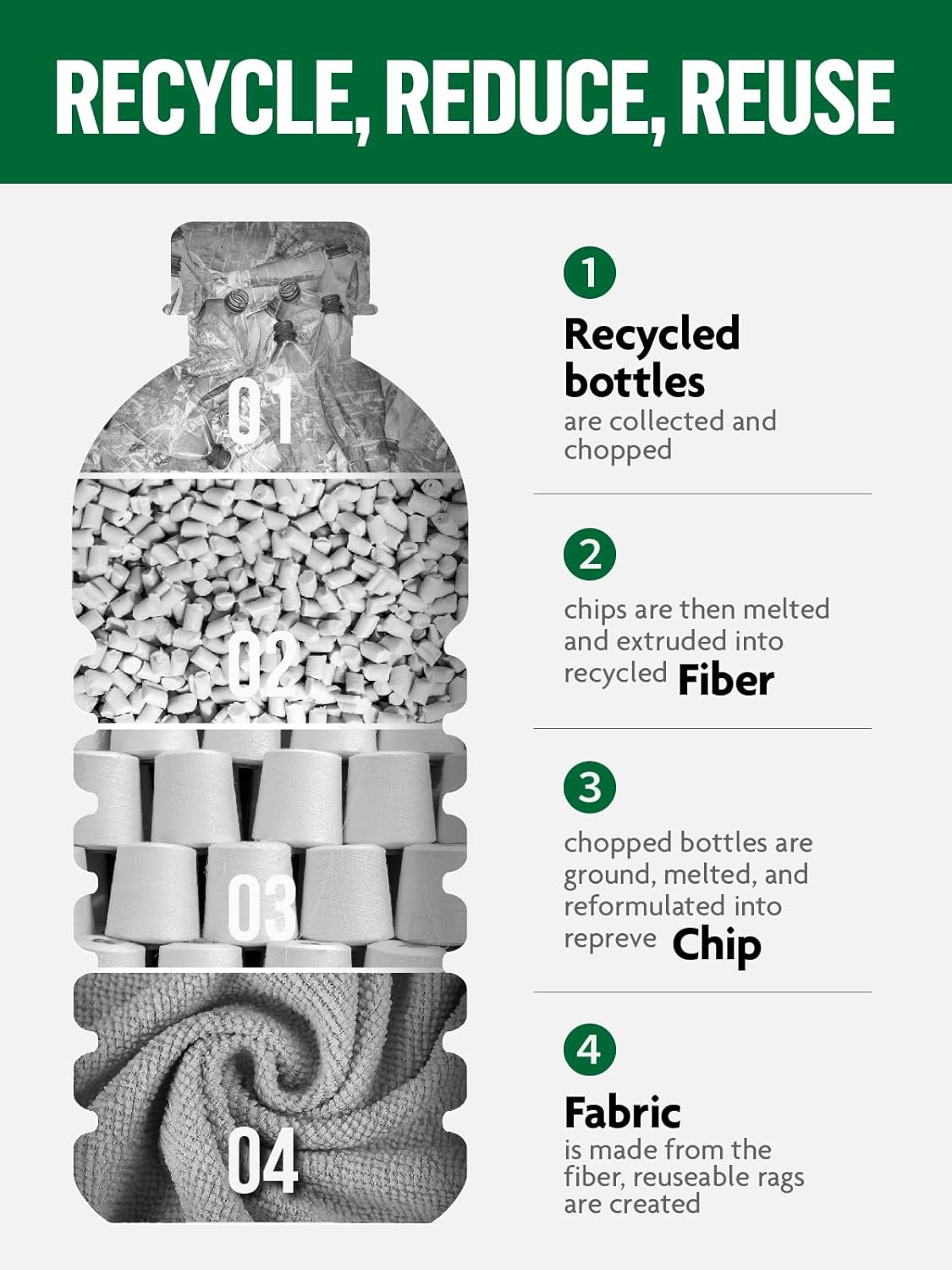 - [Alternative to Paper Towels] Designed for durability, the cloths are washable and reusable up to 50 times. The sturdy 175gsm microfiber will be a highly effective cleaning results