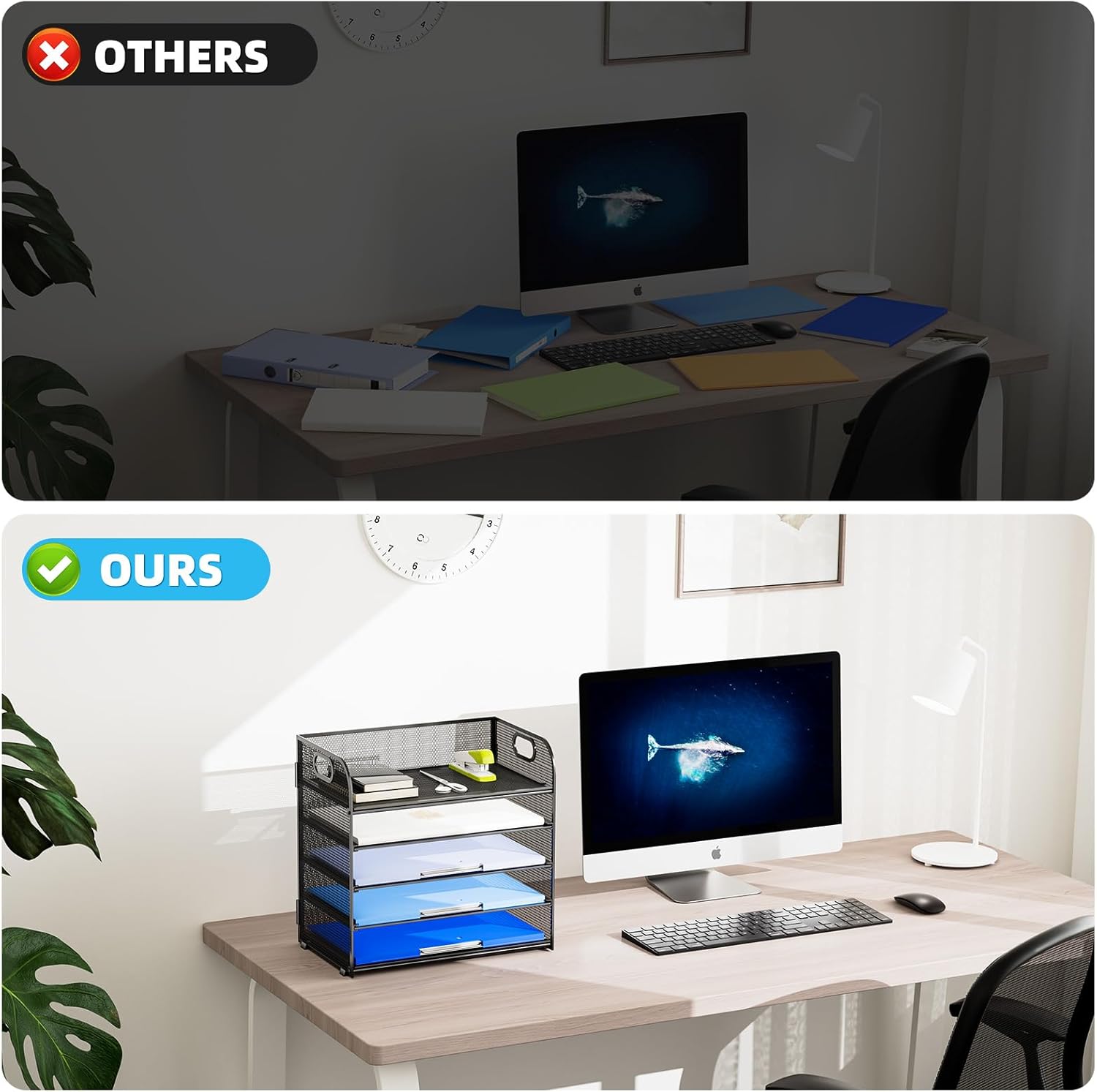 - 【MULTI-PURPOSE ORGANIZER】5-tier layered design and large capacity make the paper organizer become an ideal choice for managing all kinds of letter-size letters, paper, books, bills, etc. Let you quickly identify the contents of each compartment super easy!