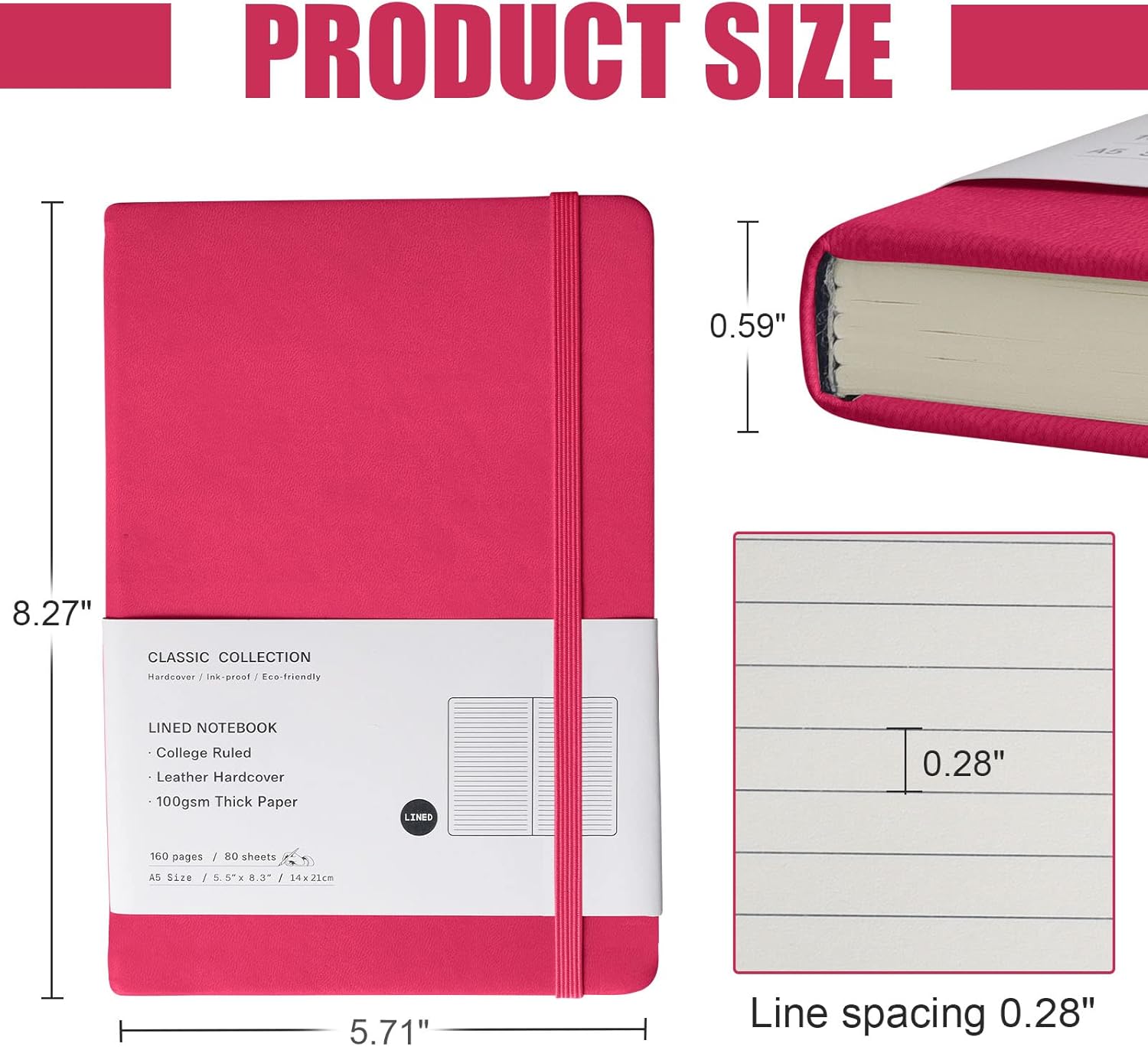 - Size & Package:5.7 in by 8 in Lined Journal Notebooks features durable and water-resistant vegan leather cover, can protect the pages inside for years and provide a comfortable writing surface.rounded corners, 160 pages, ribbon bookmark & elastic closure band.