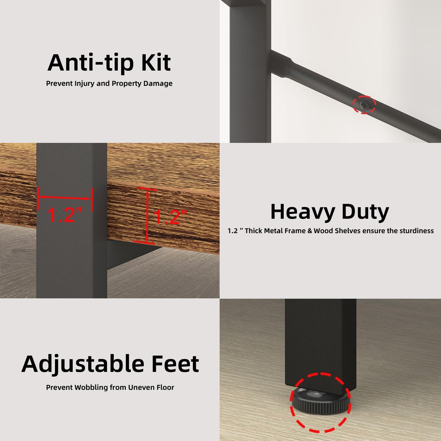 - ăAnti-tip Kits & Easy Assembly ăïŒPlease remember to install the anti-tip kits on the wall for better stability and less unexpected injuries. With smart design and all tools included, you never get stuck with the hard assembly jobs for the rustic brown bookcases and book shelves 5 shelf.
