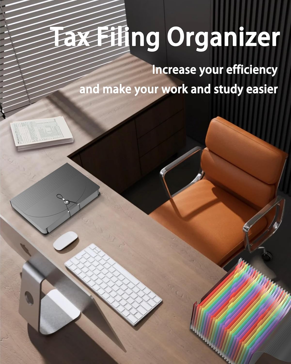 - 📂【EXPANDABLE & HIGH CAPACITY】-The file organizer keeps each slot's papers separated and organized in a good manner. 24 pockets expandable file folder. Product Size: Length: 13” High: 9.4'', width:1.96"-27". Expandable property gives it a possibility to hold approximately 3000 A4 sheets.