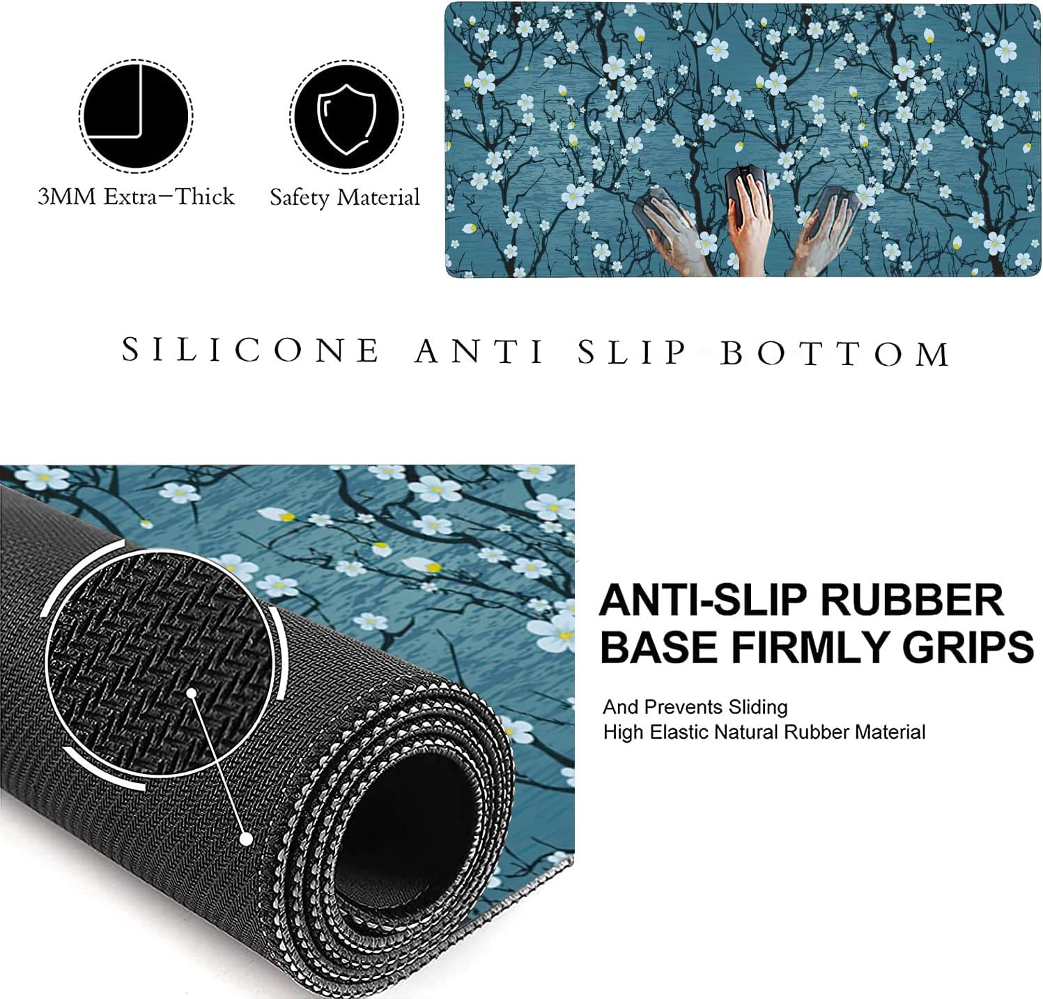 - 【Stable Rubber Base】Desk Mat with Rubberized Grip and Texture,Letting You use This Mouse Pad on Any Surface.It Can Effectively Prevent The Mouse And Keyboard From Sliding and Moving for Stable Operation.While Sturdy,It's Flexible Enough to be Rolled Up for Easy Transport,to Move Around So You Can Work or Game Wherever You Want.