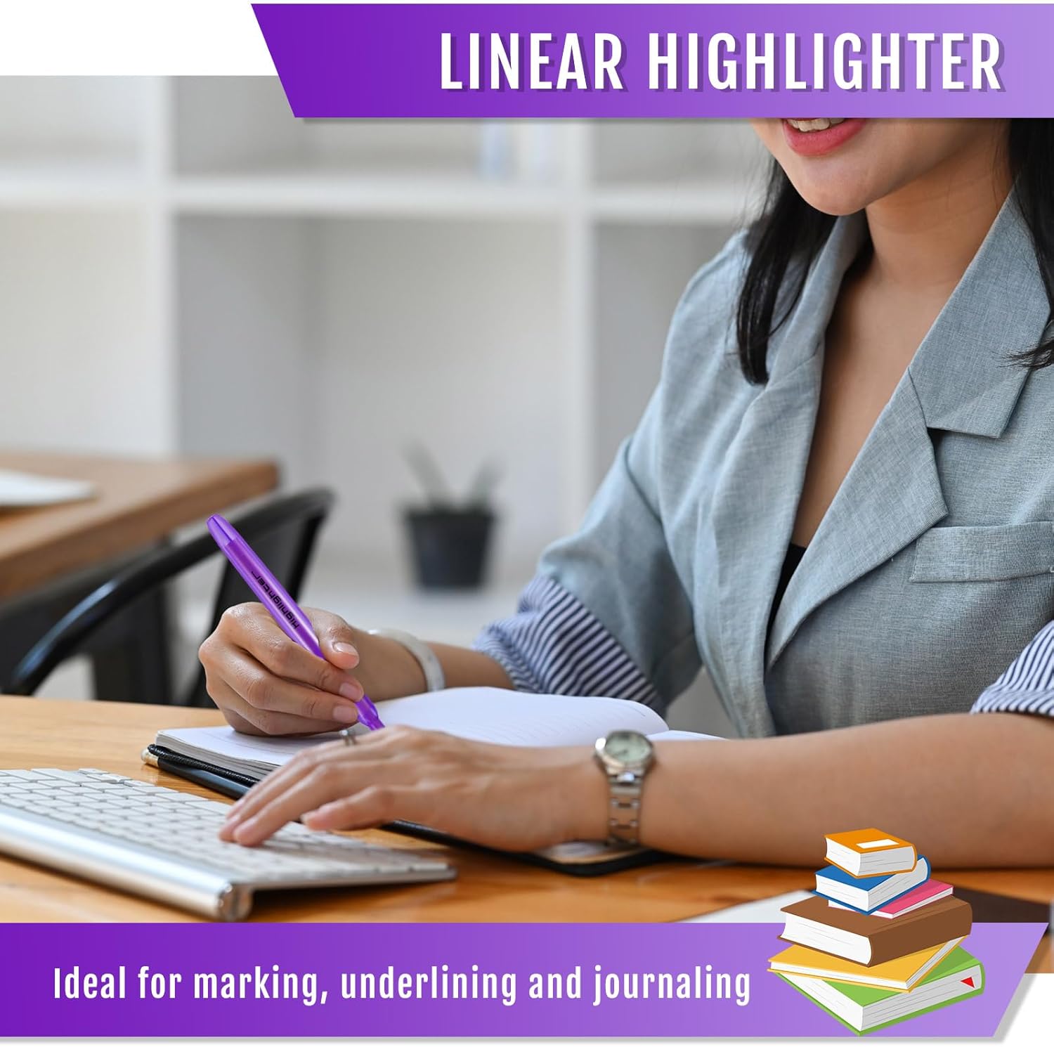 - Package Includes: you will receive 60 purple cute highlighters, enough number of highlighters to meet your daily use and replacement needs, very bright purple can better help you mark key sentences, highlighting, so you can quickly find the key sentences and key vocabulary when reading