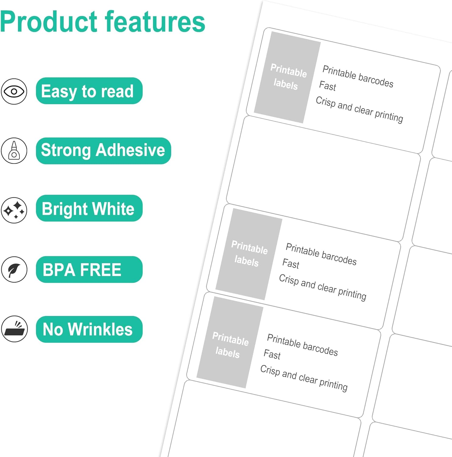 - Multipurpose Label:Can be printed and handwritten,great use as shipping labels, address labels, product labels, food labels, barcode labels,name labels,bottles labels, christmas gift greeting labels, box labels, fba labels etc
